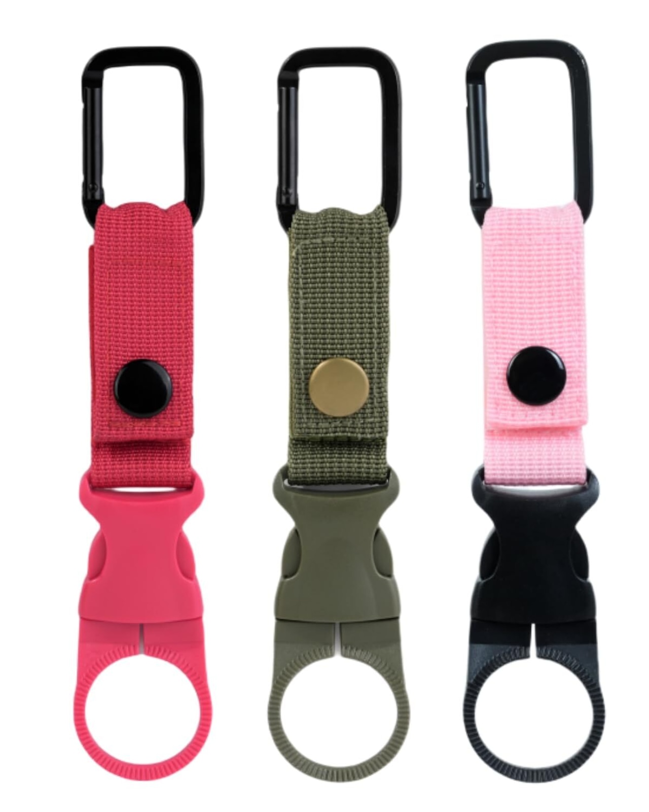 ペットボトルホルダー ドリンクホルダー カラビナ付き(取り外し可能)ベルトホールド可能 アウトドア 登山 キャンプ ハイキング 登山用 水分補給 着脱簡単Red-Green-Pink