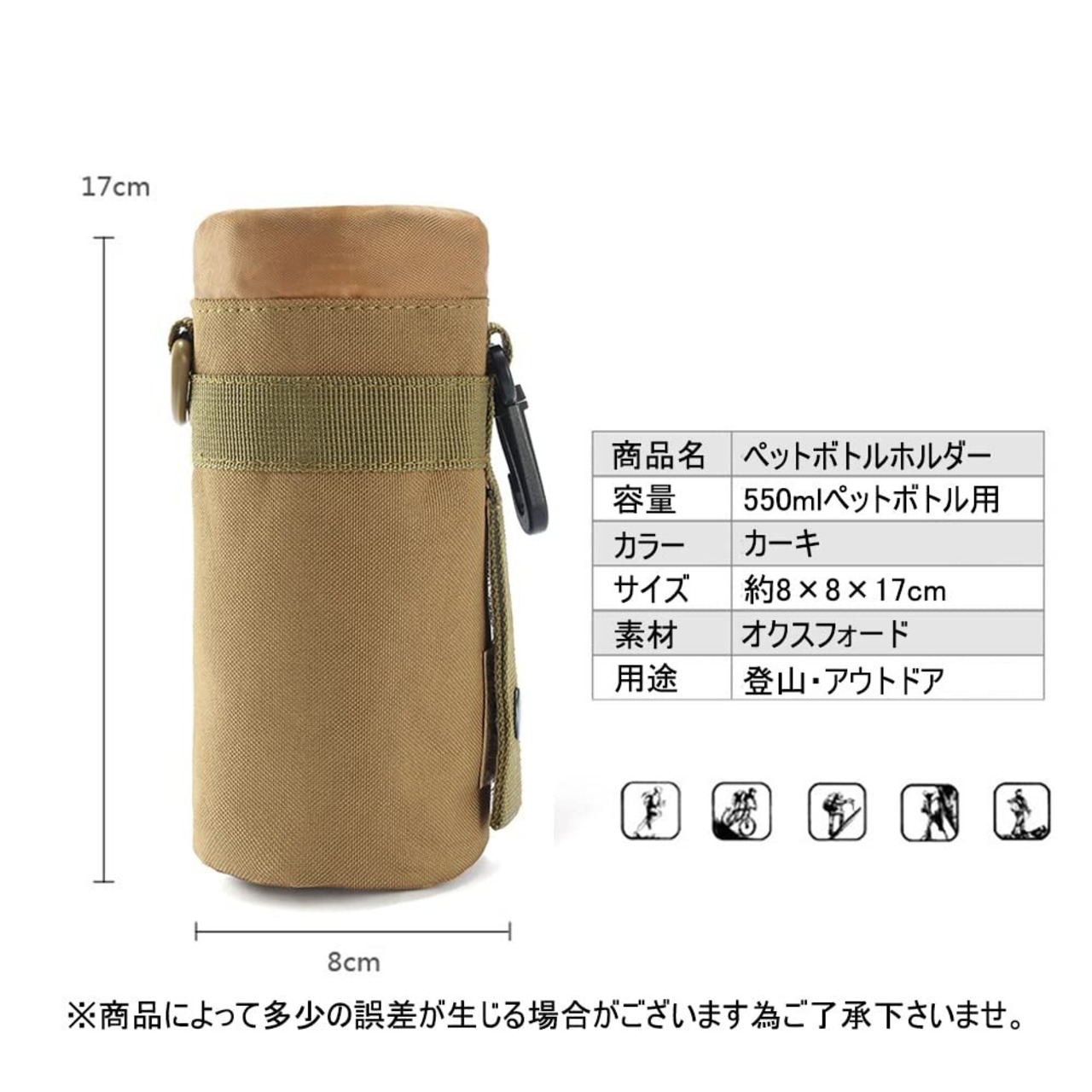 Camonti ボトルホルダー 登山 水筒カバー 550ml ペットボトルホルダー ウォーターボトル ホルダー ペットボトルカバー Molleモール対応 アウトドア 水筒ポーチ 登山用 ホルダー ケース 1個入り(カーキ)