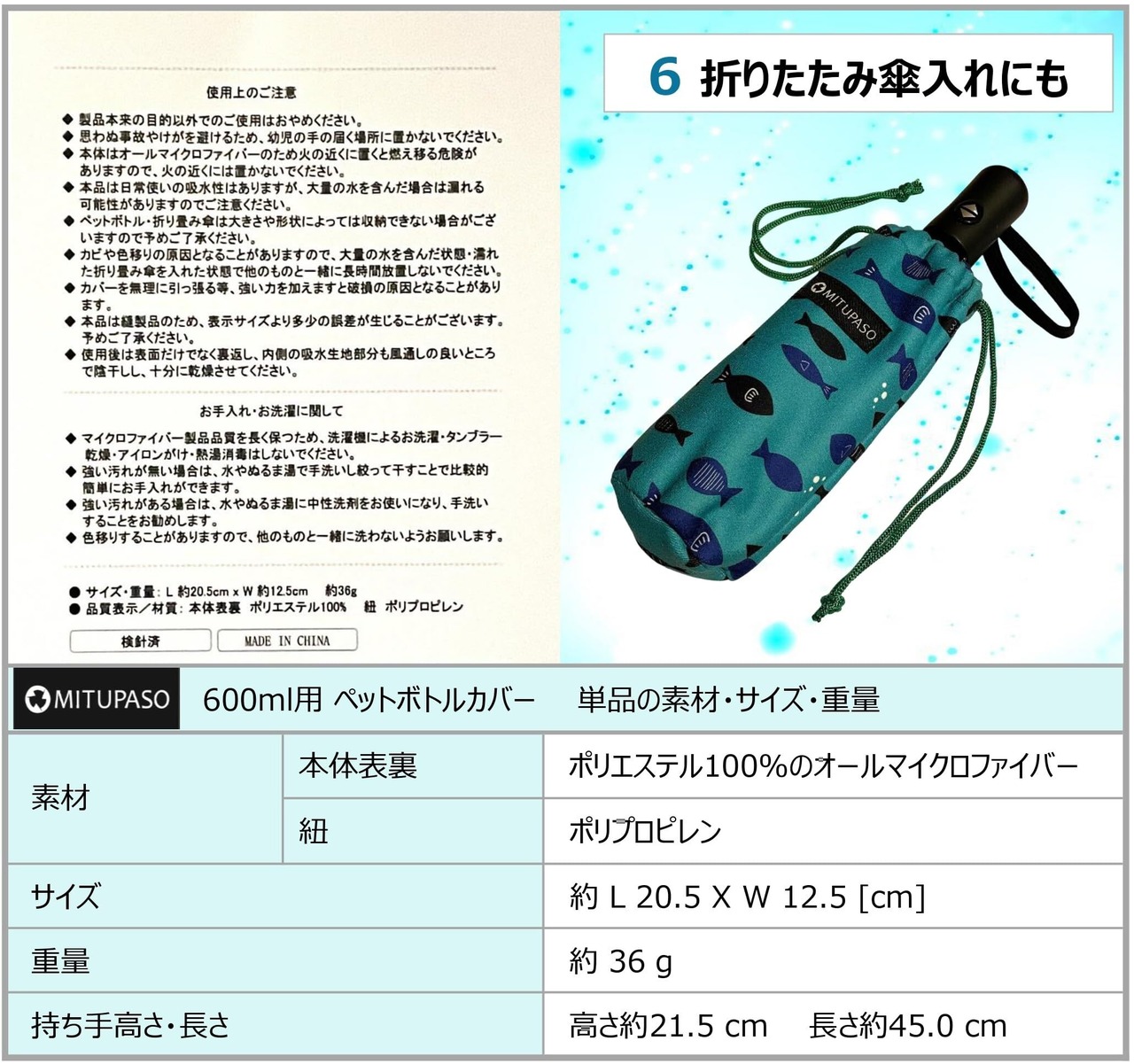 [MITUPASO] ペットボトルカバー グリーンオーシャン魚 余裕の600ml+α オールマイクロファイバー 小物入れポーチ 折りたたみ傘 ケース ペットボトルホルダー ペットボトル収納 ドリンクホルダー持ち歩き ペットボトル 男女兼用 レディース メンズ (グリーンオーシャン, 魚)