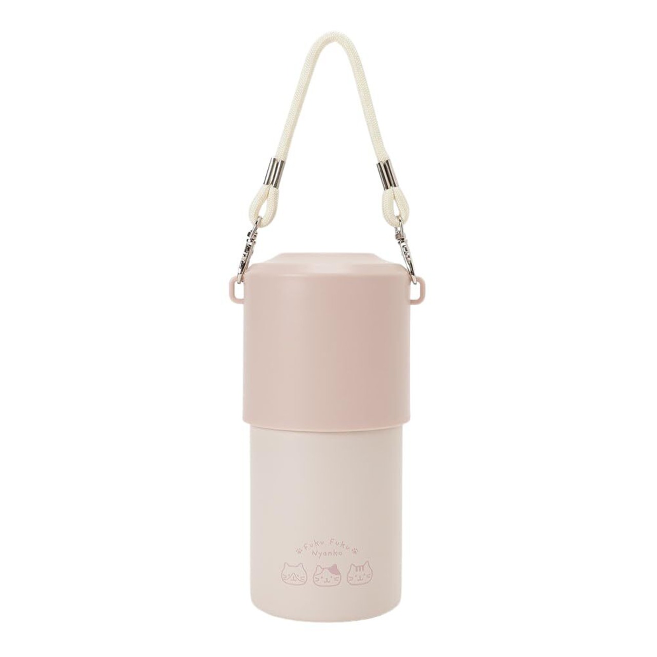ペットボトルごと温度をキープできるペットボトルクーラー。 ステンレス製の真空二重構造により、温度や風味をキープしてドリンクを楽しめます。 ペットボトルごと入れて使用するので、ボトル自体を毎日洗う必要がないのもうれしいポイント。 ※ふくふくにゃんこ 2WAYショルダーストラップは別売りです。