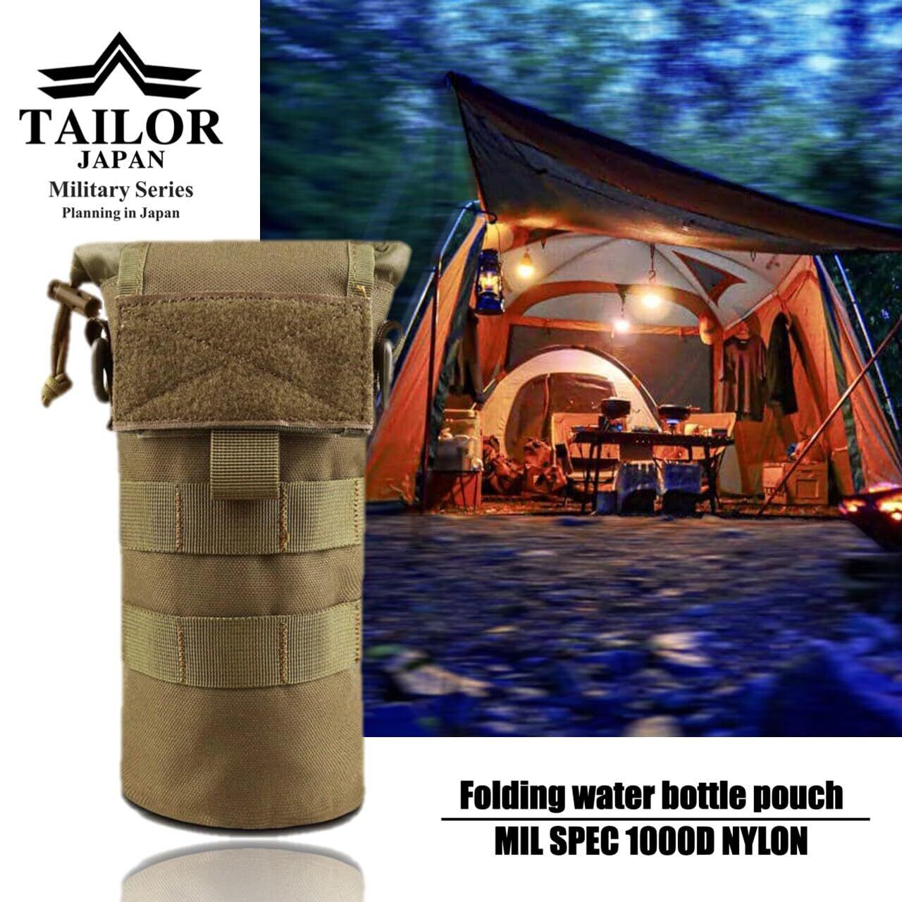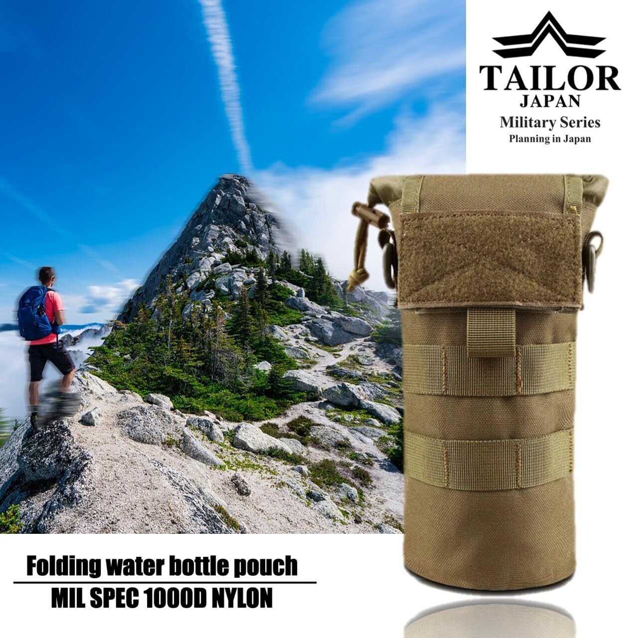 【TAILOR JAPAN】折り畳み 水筒ポーチ ペットボトルポーチ ドリンクホルダー ペットボトルホルダー モールシステム 防水1000D (ブラウン)