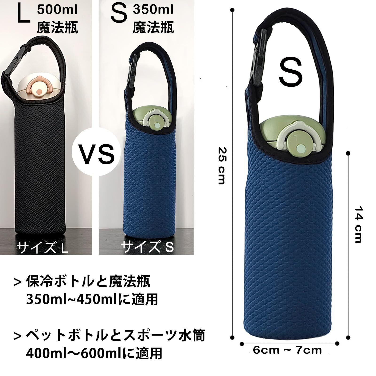 【水筒とペットボトルに適用】弾力性がある特殊な材料で作られて、ボトルのサイズに合わせて広げることができます。ボトル底の直径は6cmから7.5cmに適用、450ml~600mlの魔法瓶と保温ボトル、500ml~800mlのペットボトルとスポーツ水筒に適用。