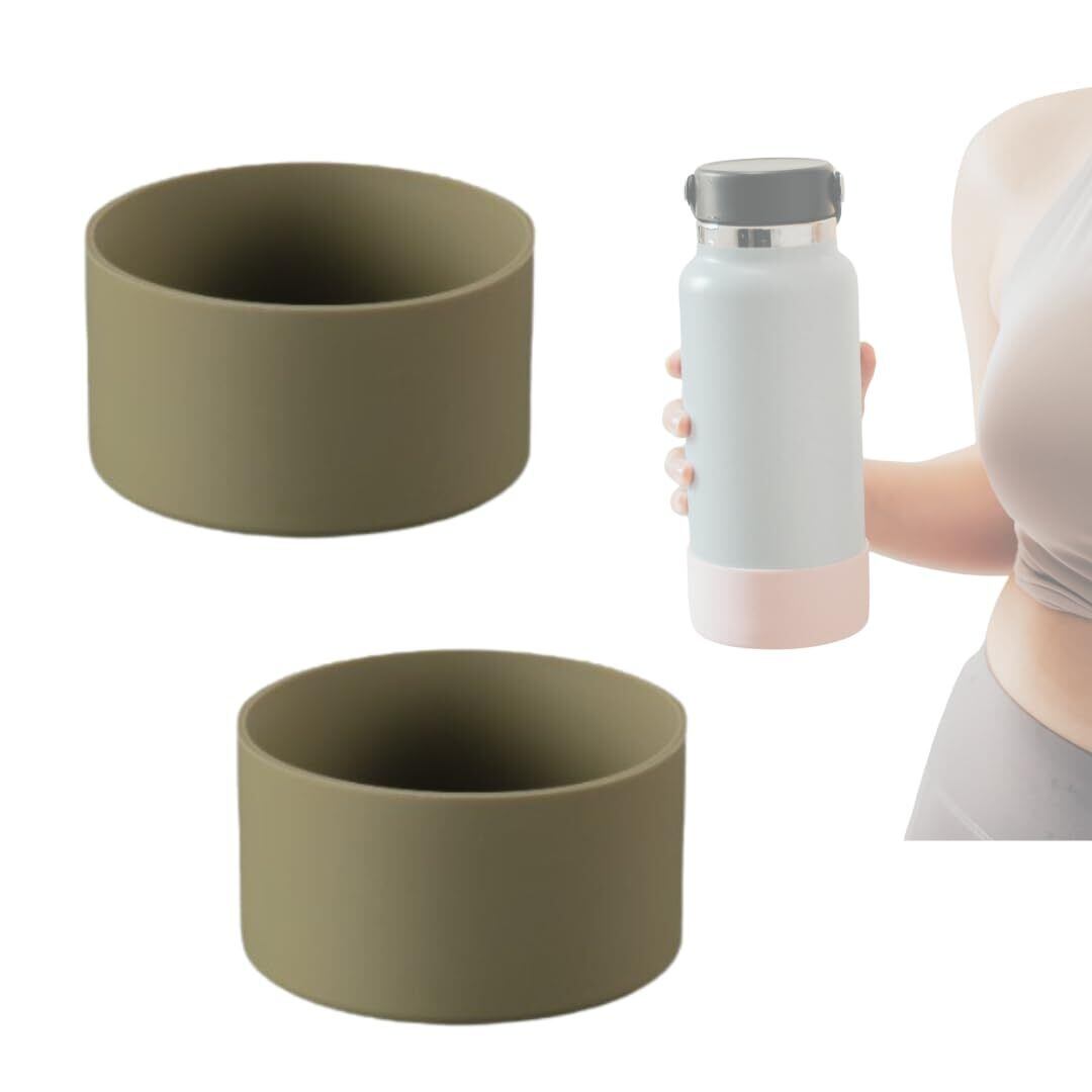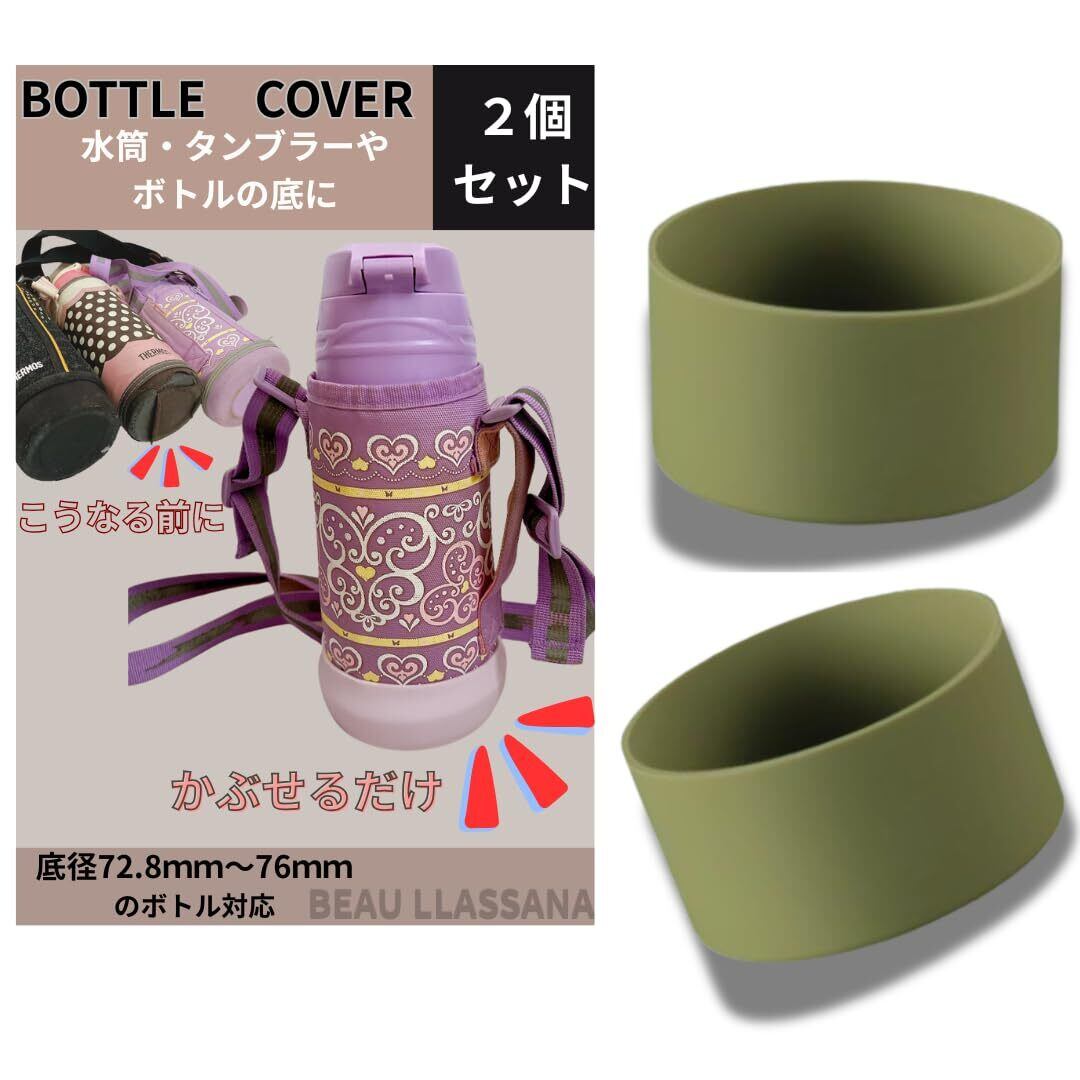 【BEAU LLASSANA】水筒シリコン カバー 底キャップ タンブラー アウトドア 水筒 ペットボトル 滑り止め 転倒防止 (カーキ, 75)
