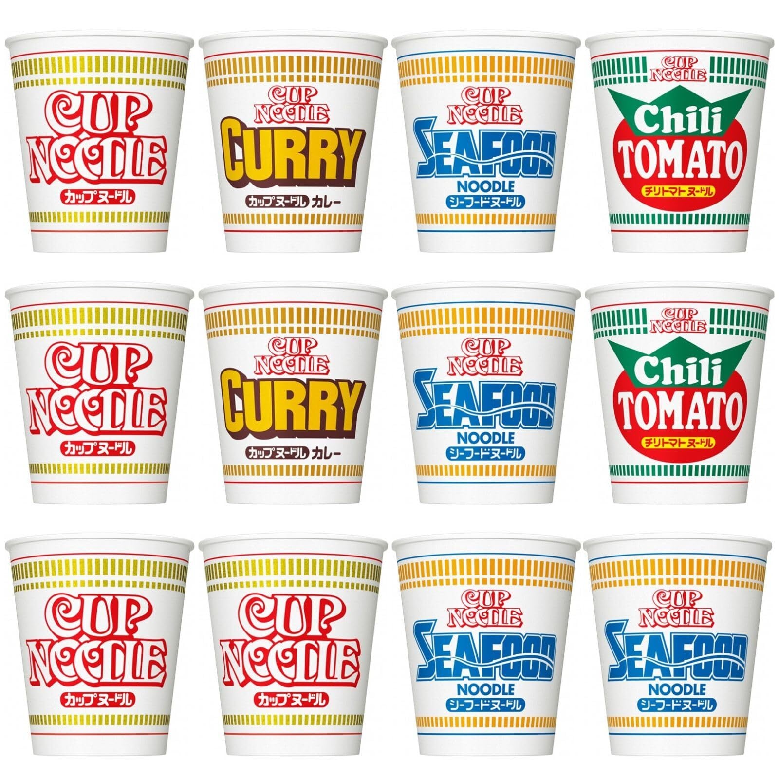 カップヌードルの人気4大フレーバーのアソートセットです。しょうゆ4食、カレー2食、シーフード4食、チリトマト2食の合計12食セット。食べ比べをしても楽しい。日々のランチや小腹がすいた時にも便利。家族の軽食や、夜食にもぴったり。