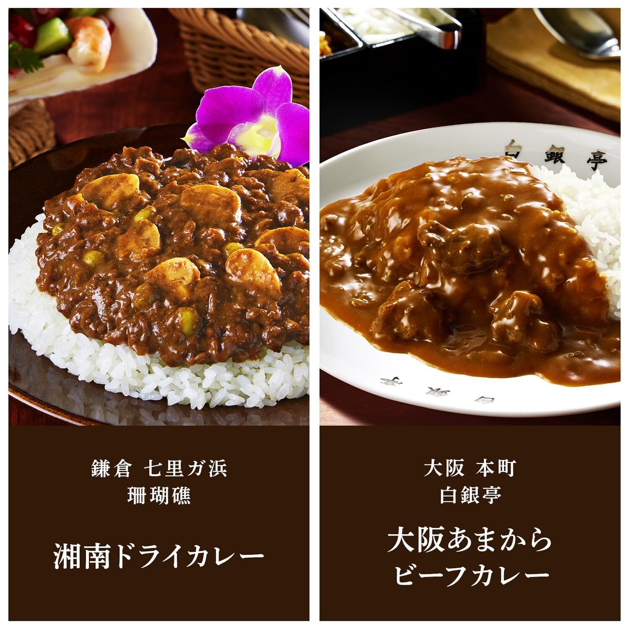 種類:欧風ビーフカレー、バターチキンカレー、浅草ハヤシビーフ、大阪あまからビーフカレー、大阪スパイスキーマカレー、南インド風チキンカレー、香味スパイスカレー、骨付きチキンカレー、 湘南ドライカレー、クリーミーバターチキンカレー