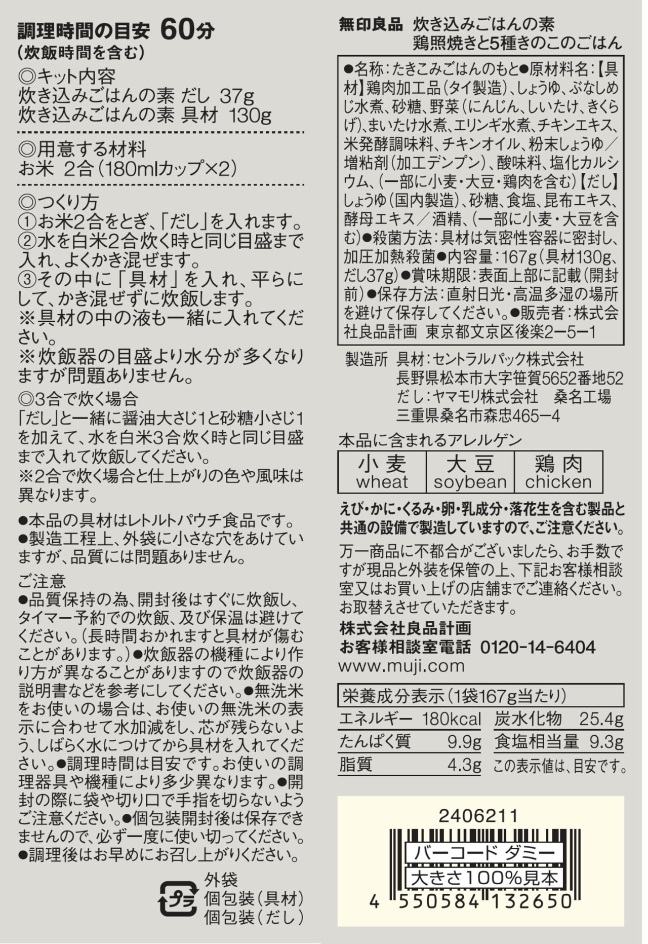 無印良品 炊き込みごはんの素 鶏照焼きと5種きのこのごはん 2合用 TB0D2A4S
