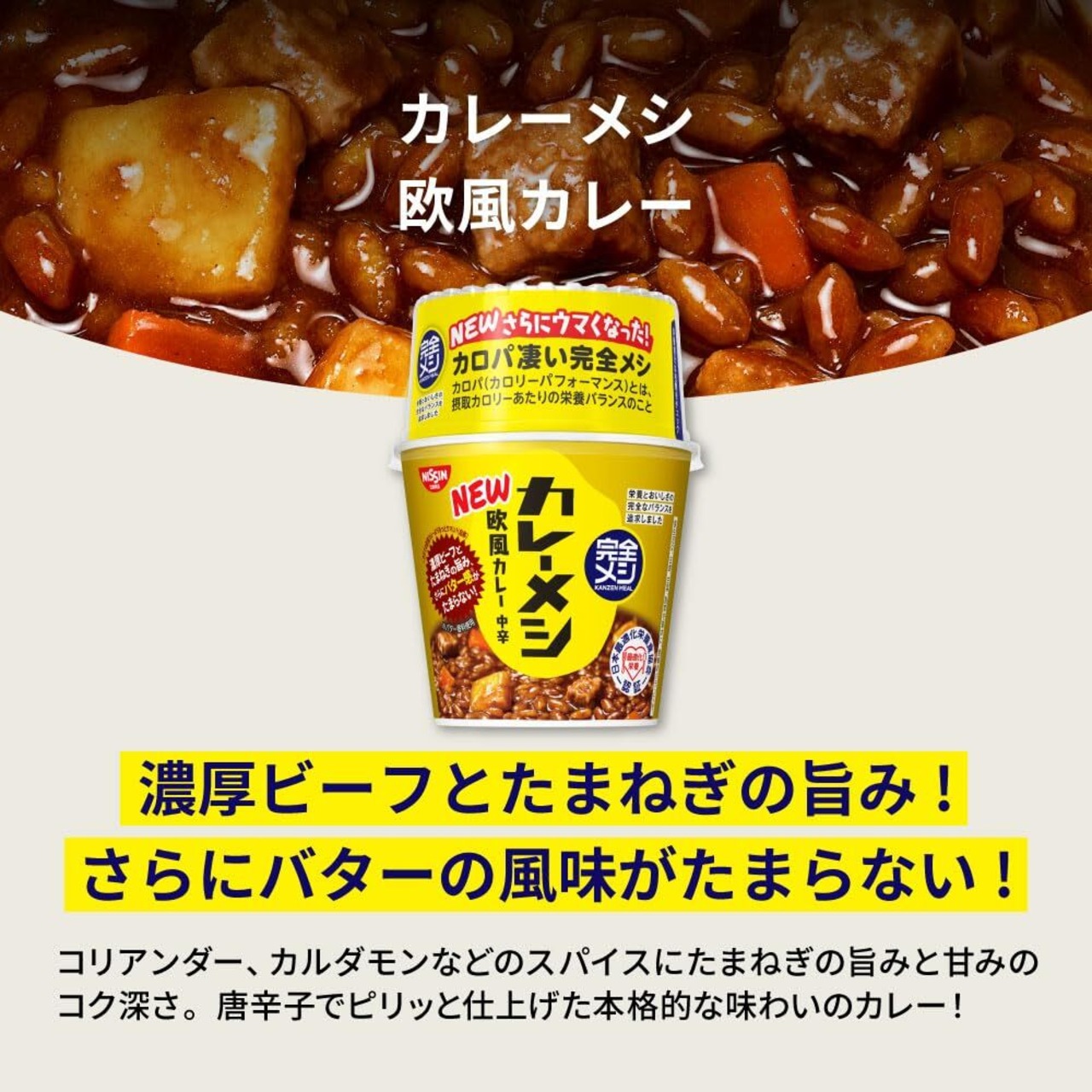 本格的なおいしさが特長の「完全メシ カレーメシ 欧風カレー」。「カレーメシ」のスパイス香る本格的なおいしさはそのまま、栄養とおいしさの完全なバランスを追求!