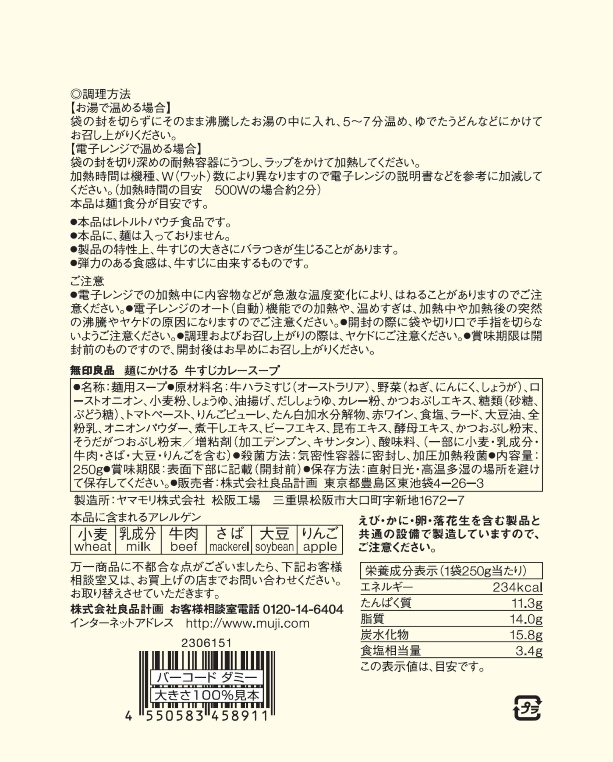 無印良品 麺にかける 牛すじカレースープ ・250g(1人前) 83458911