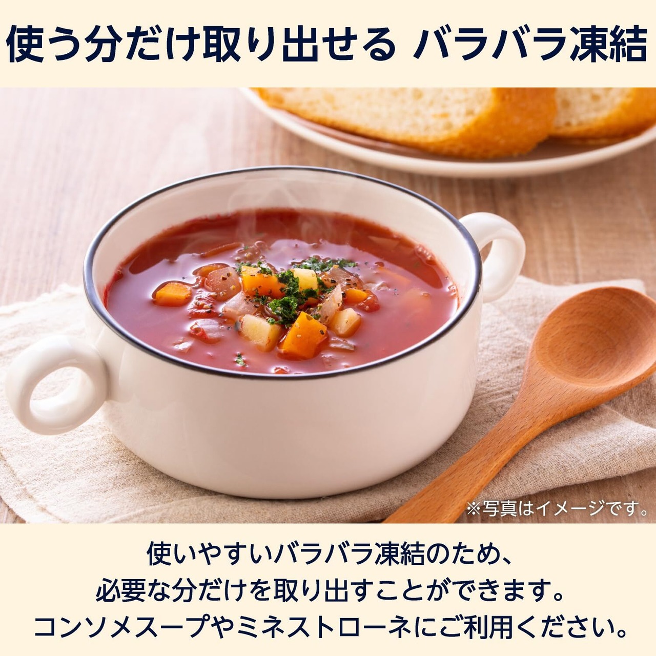 by 冷凍野菜スープの具は旬の時期に収穫されたキャベツ、ブロッコリー、カリフラワー、にんじん、じゃがいもをミックスして冷凍しています。コンソメスープやミネストローネにご利用いただけます。 1. IQF凍結なので、使いたい分だけを取り出してご利用いただけます。 2. 1kgの大容量 3. 旬の時期に収穫された色鮮やかな原料を、軽く湯通しして冷凍しています。 4. 指定の契約農場で栽培された原料を使用しており、産地から一貫した管理を行っております。