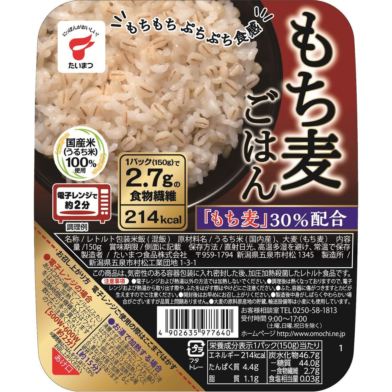 原材料:うるち米(国内産)、大麦(もち麦)
