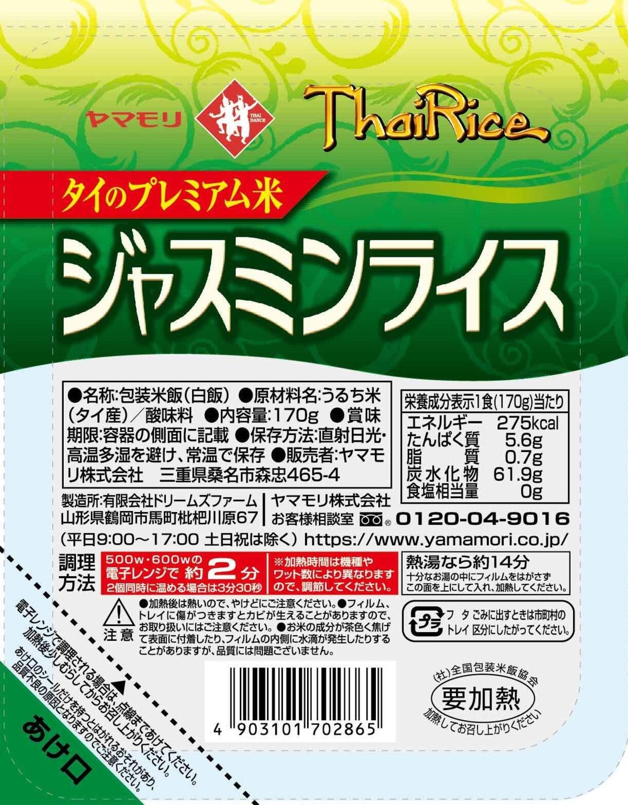ヤマモリ ジャスミンライス 170g×4個