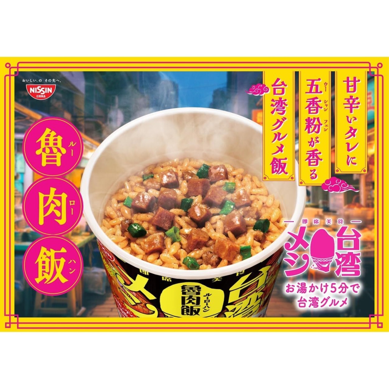 「日清台湾メシ 魯肉飯」は、台湾の定番料理 "魯肉飯" をカップメシで再現した商品です。甘辛いしょうゆだれに、豚肉の旨みと八角やシナモンなど数種類のスパイスをブレンドした五香粉の香りをきかせ、やみつきになる味わいに仕上げました。