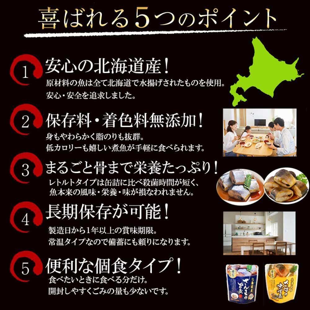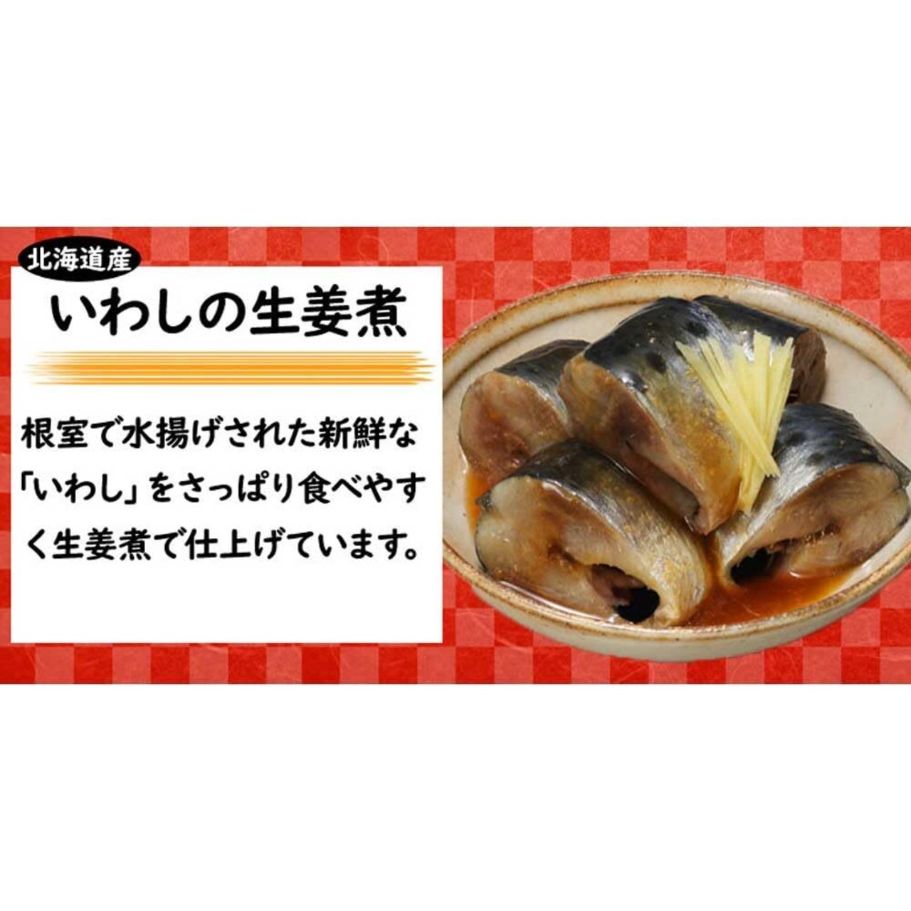 商品内容:さんまの旨煮(95g)いわしの旨煮(95g)いわしの生姜煮(95g)さばの味噌煮(120g)ほっけの旨煮(80g)各2パック 漁師のお味噌汁1食