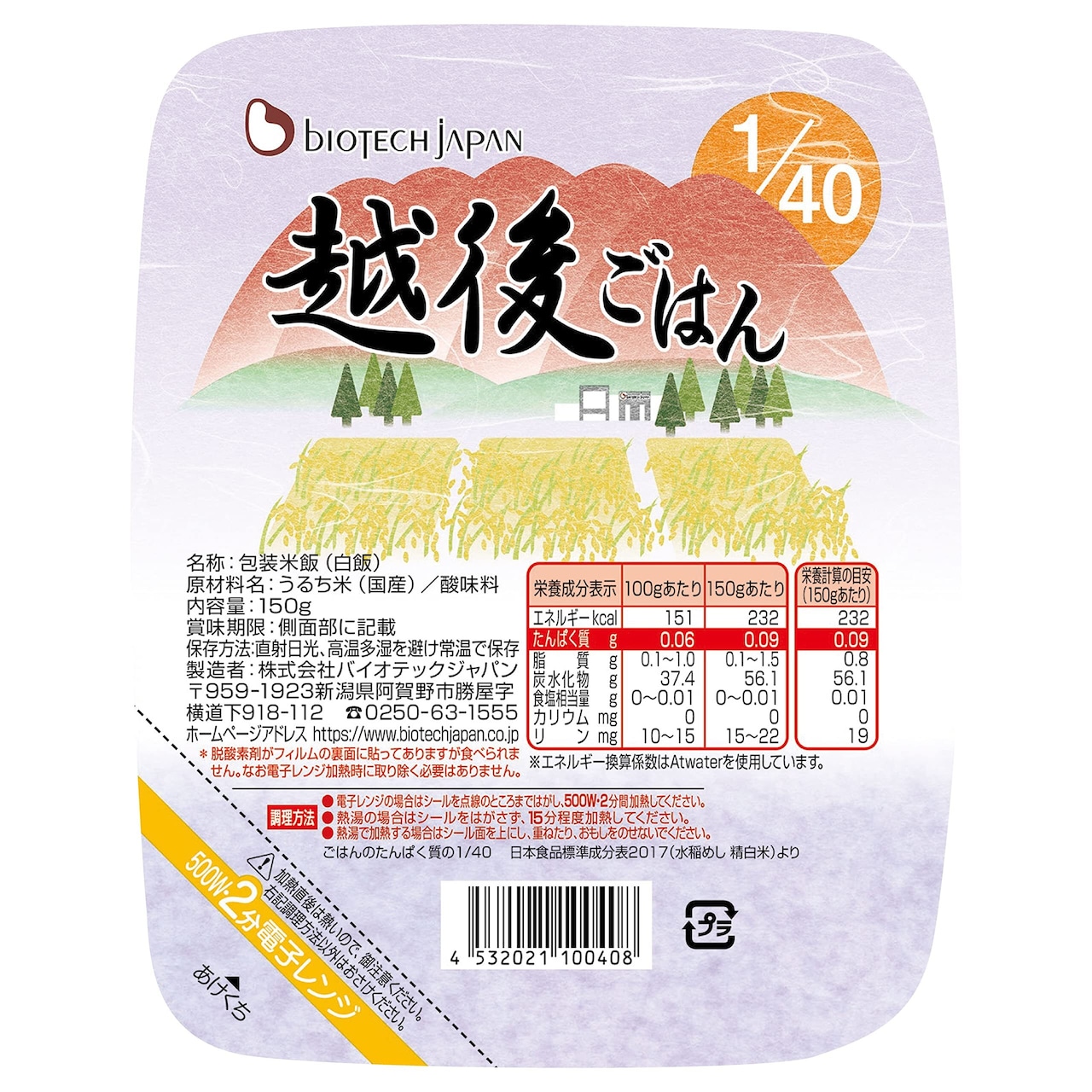 バイオテックジャパン 1/40越後ごはん (4個) 低たんぱくご飯 腎臓病食