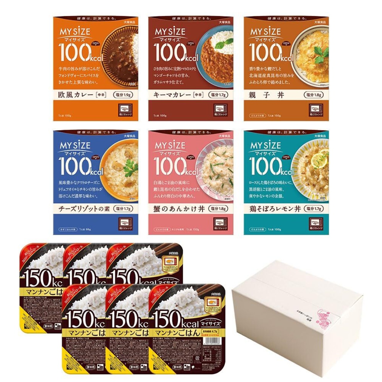 カロリー が気になるけど、しっかり食べたいあなたへ。マイサイズ6種とマンナンごはんのセットなら、1食約250kcalで大満足!飽きずに楽しめる多彩な味わいで、美味しく賢くカロリーコントロール!