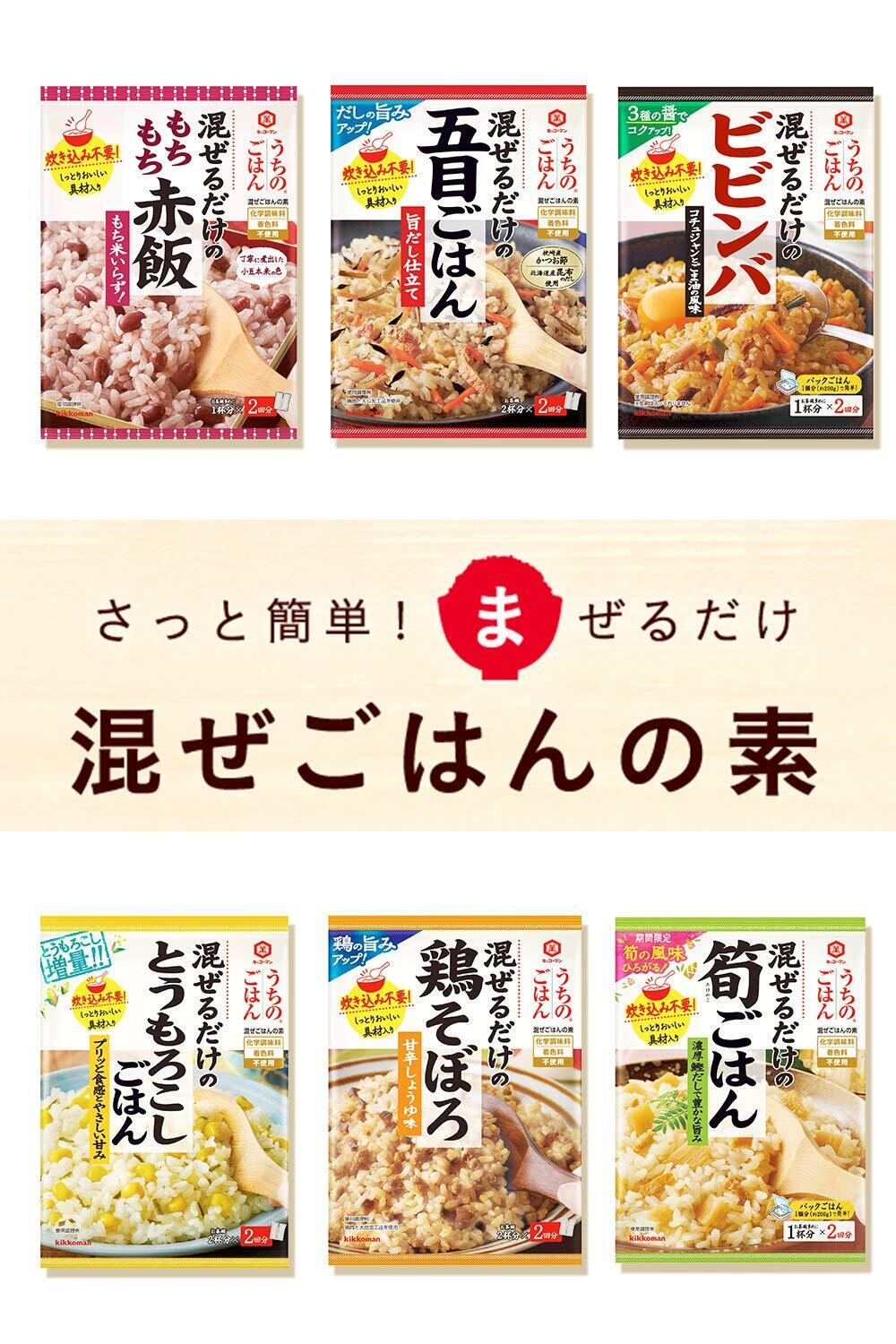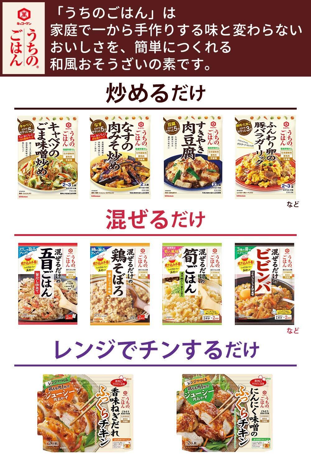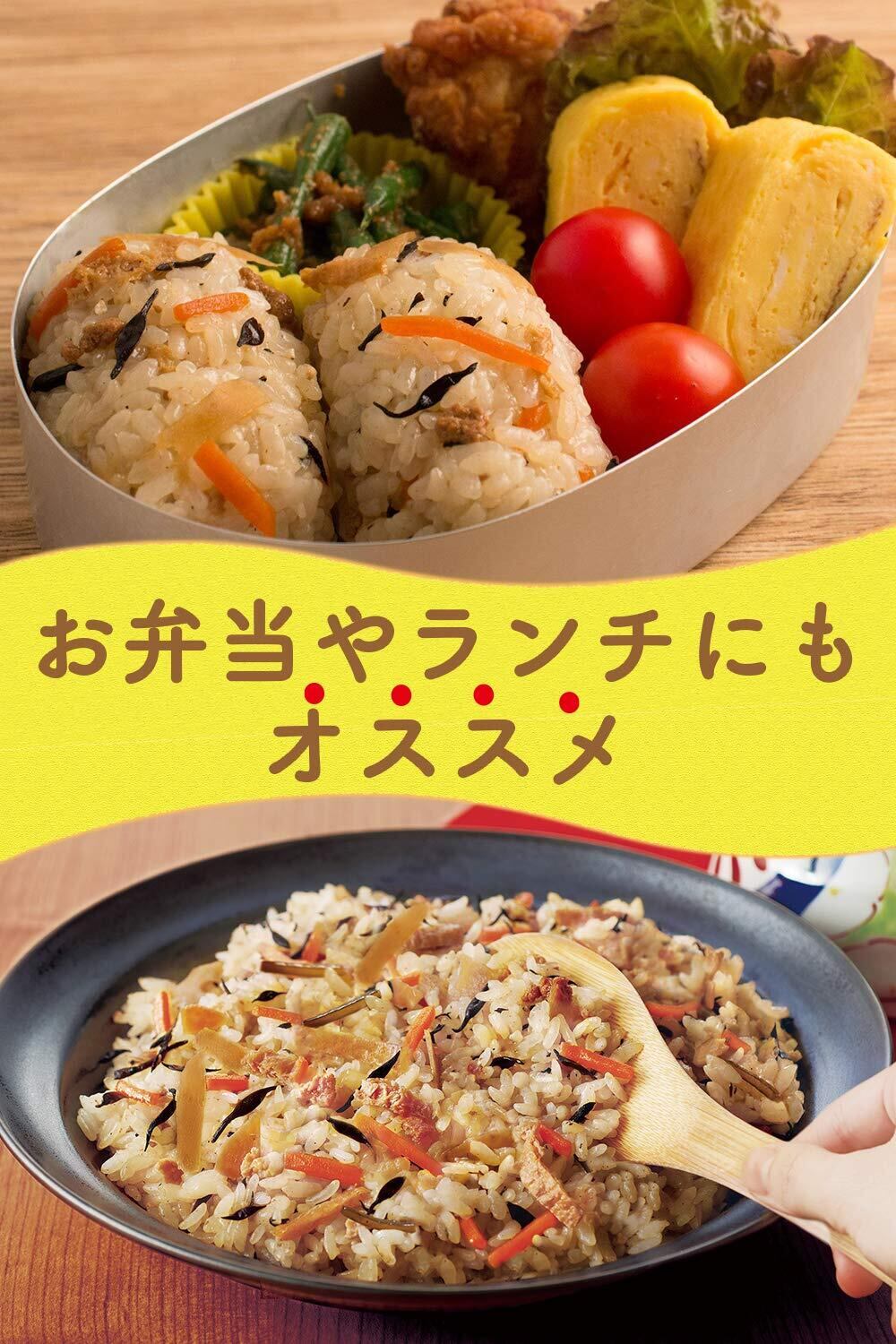 和風だしの利いた具材と風味が味の決め手の混ぜごはんの素です。具材にしいたけ、鶏ひき肉、いりごま、油揚げ、ごぼう、にんじんを使用し、だし感のある味わいに仕上げました。丸大豆しょうゆの旨みと、だしの風味を活かした味わいに仕上がります。化学調味料無添加です。お茶碗2杯分(1合)×2袋入りです。平日の夕食・お弁当まで手軽にご利用いただけます。