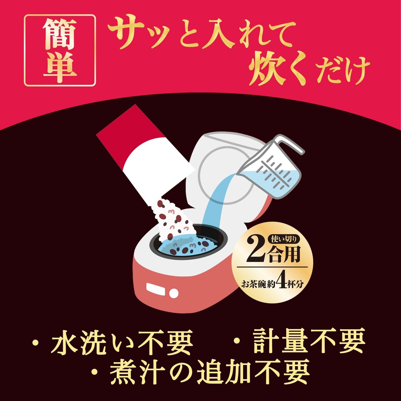 穀物No1メーカーはくばくがこだわった味わい深いお赤飯です。分包から一括包装へとリニューアルすることで、さらに手軽に使いやすくなりました。水洗いの必要もなく、手を濡らすことなくお赤飯を作ることができます。煮汁を追加する必要は無し。小豆、黒米、赤米を使用し穀物が持つ色をそのままいかすことで、自然な色づきのお赤飯となります。もち米・うるち米のこだわりブレンドで、ほどよいもっちり感があり、冷めてもおいしく召し上がれます。お祝いごとだけでなく、普段のお食事やお弁当、おにぎりにもおすすめです。