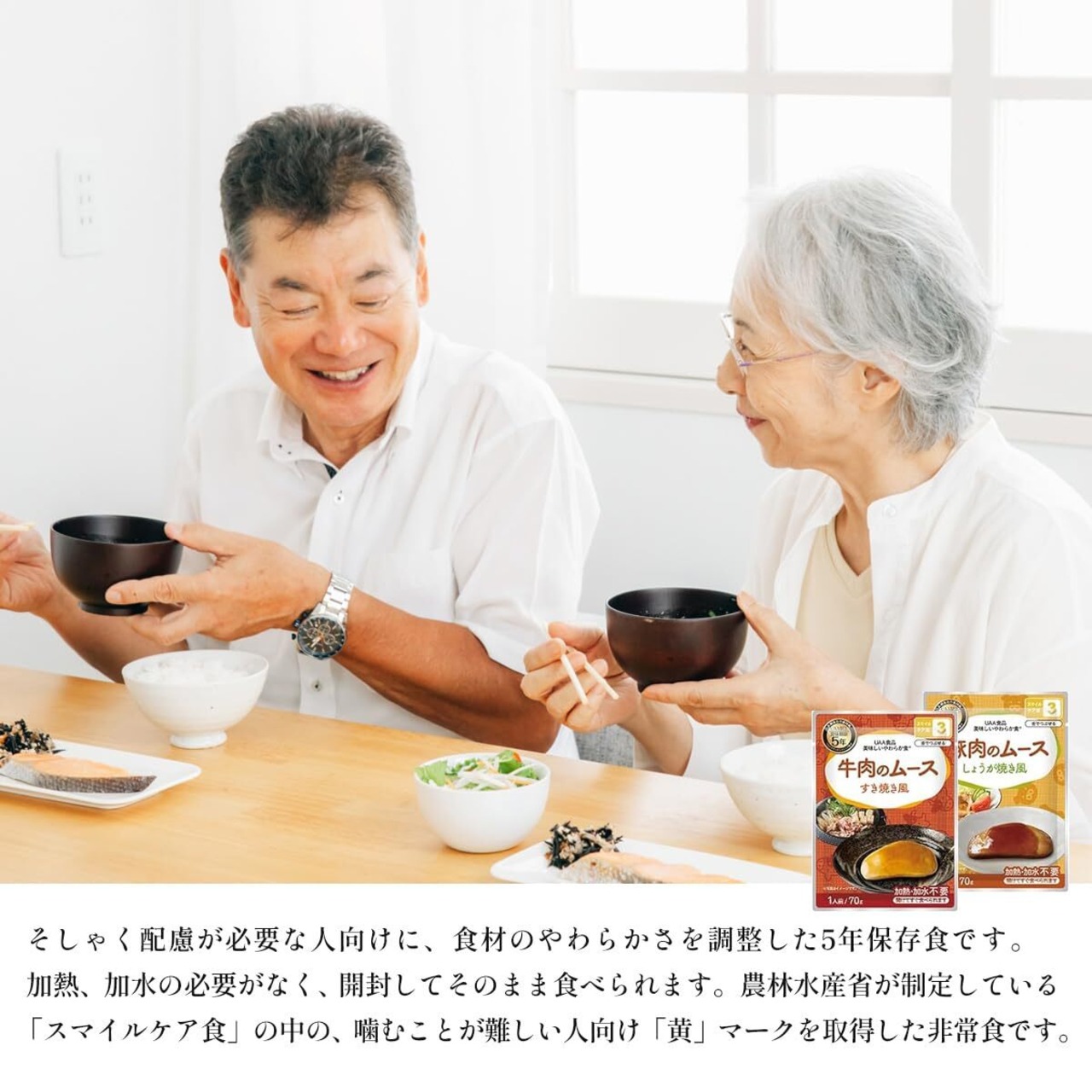 スマイルケア食4~3なので、ご高齢者の方でも美味しく食べられます。老人ホームやデイケア施設、介護用の備蓄にも!
