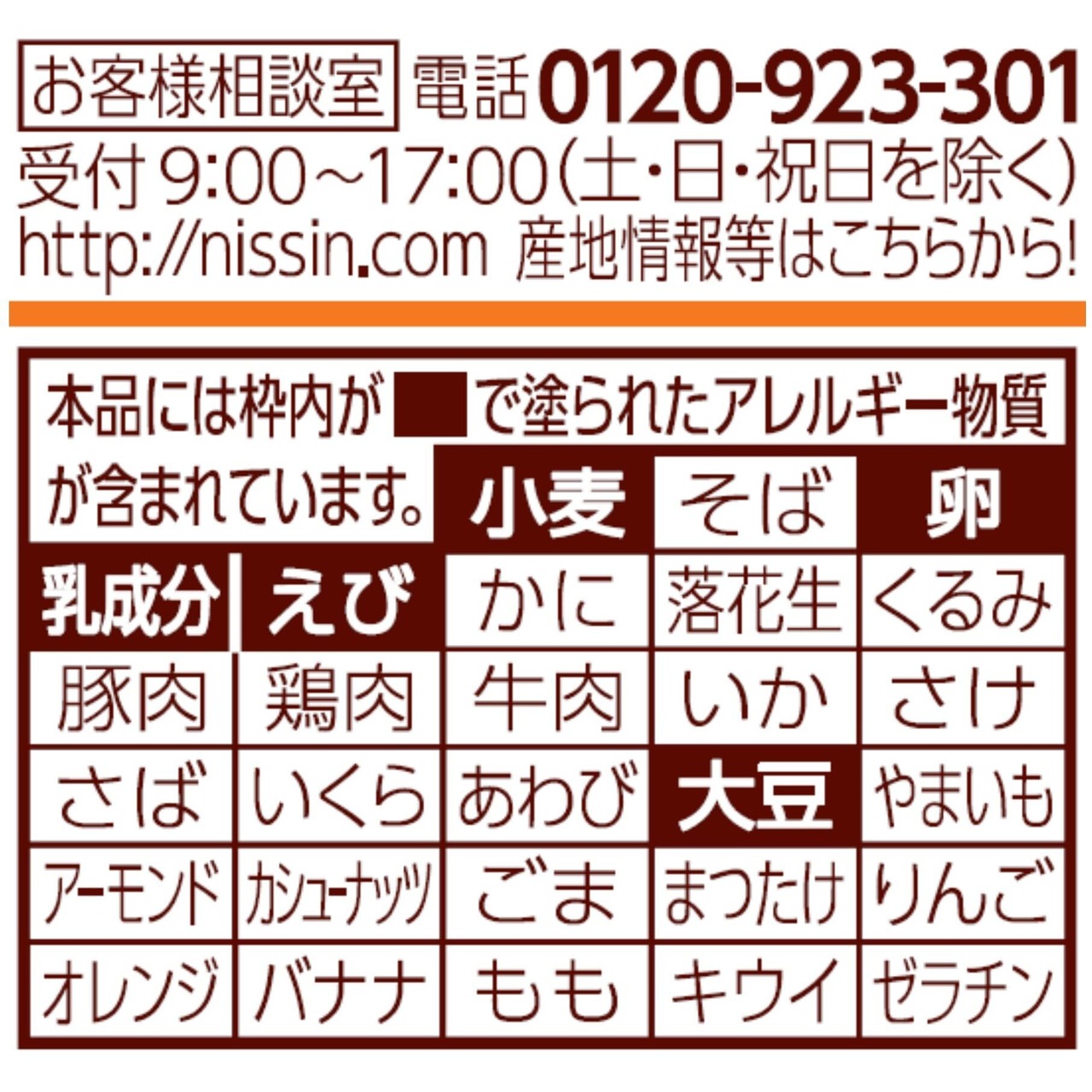 油揚げめん(小麦粉(国内製造)、植物油脂、食塩、植物性たん白、こんぶエキス、大豆食物繊維、糖類)、かやく(かき揚げ)、スープ(食塩、糖類、粉末しょうゆ、魚粉、かつおぶし調味料、香辛料、ねぎ、たん白加水分解物)/加工でん粉、増粘剤(アラビアガム)、調味料(アミノ酸等)、炭酸Ca、リン酸塩(Na)、カラメル色素、酸化防止剤(ビタミンE)、pH調整剤、香料、乳化剤、カロチノイド色素、チャ抽出物、ビタミンB2、ビタミンB1、ベニコウジ色素、(一部にえび・小麦・卵・乳成分・大豆を含む)