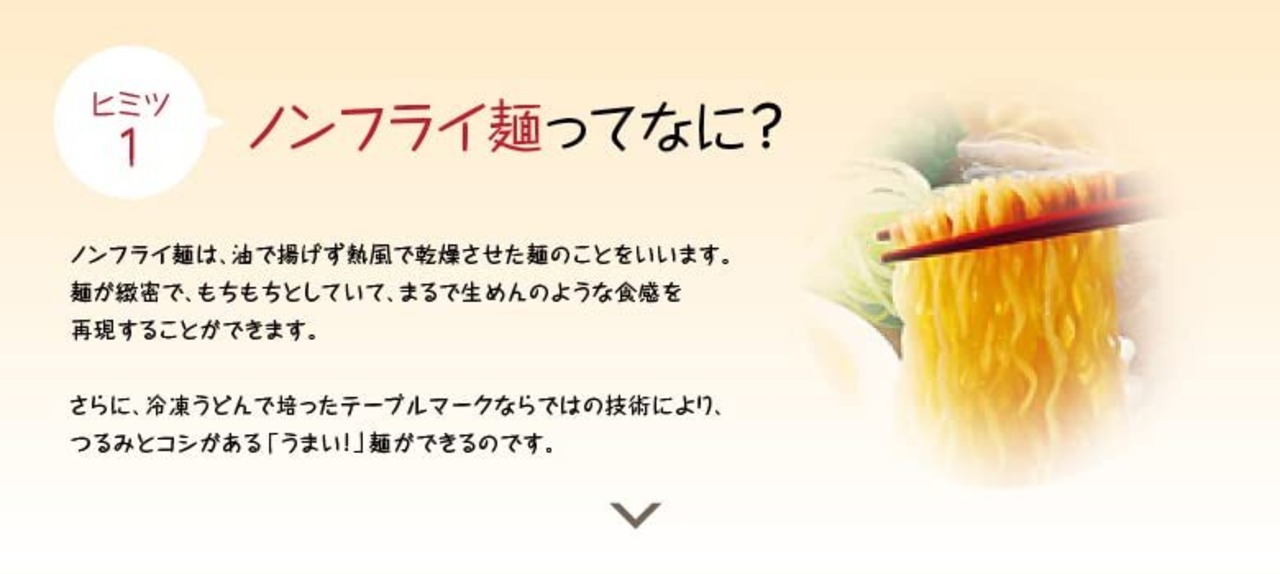 原材料:めん〔小麦粉(国内製造)、でん粉、食塩、植物油脂〕、添付調味料(しょうゆ、たん白加水分解物、食塩、砂糖、鶏脂、チキンエキス、豚脂、かつお節エキス、こんぶエキス、かつお節粉末、オニオンエキス、ねぎエキス、発酵調味料)、かやく(味付鶏肉、揚げ玉、味付メンマ、かまぼこ、ねぎ)/加工デンプン、調味料(アミノ酸等)、かんすい、炭酸Ca、着色料(カラメル、紅麹)、乳化剤、膨張剤、酸化防止剤(V.E)、V.B2、V.B1、(一部に小麦・大豆・鶏肉・豚肉を含む)