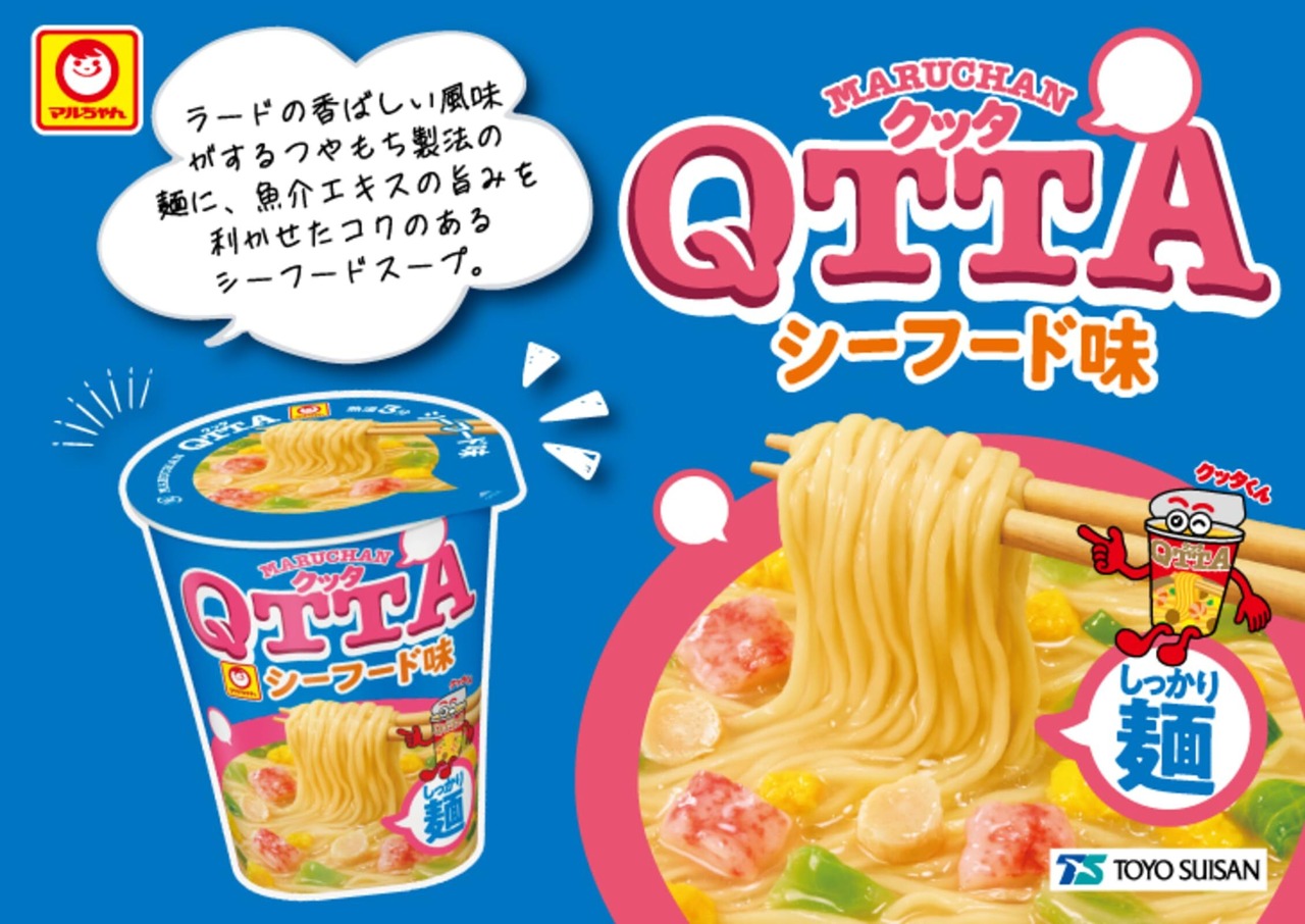 【MARUCHAN QTTA】コクをしっかり立たせたうまコクスープと、麺からしみ出すラードのうまみがやみつきに。 食べた後には「くった~」とひと息ついてもらいたい。ひと息ついたら、ちょっとだけ前向きな気持ちになってほしい。そんな想いから生まれた、カップ麺です。