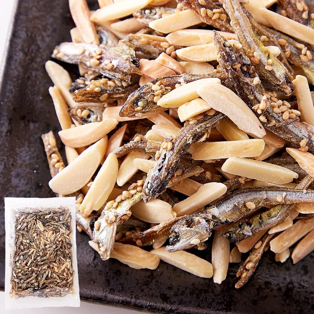 【厳選した2種の素材を使用!】食べ応えのある大きめサイズのいわしを厳選し、ほど良く甘く味付けをしました。 また、ごまの香ばしさと食感がアクセントになっています。アーモンドはアメリカ産。皮をむきスライスして香ばしくローストした縦割り。渋皮がないので雑味がなく食べやすいサイズ感。