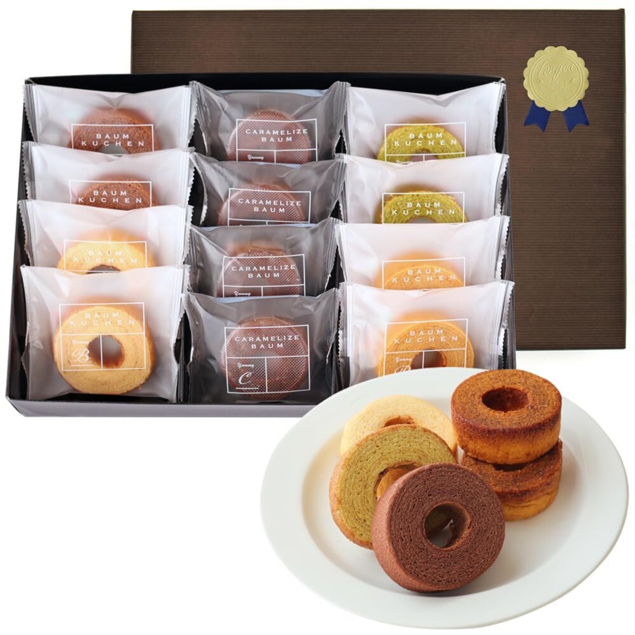 [Dolce duo] ミニバウムクーヘン 個包装 お菓子ギフト 詰め合わせ 【ギフトラッピング済】6種類 12個入 内祝 お中元 お返し お歳暮 ご挨拶 お供 包装 DAM-211