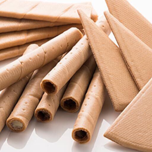 透けるほど薄く焼いた生地を、 三角、短冊、丸型に巻き上げました。 丸型にはらせん状にふんわり生地を焼き、 内側にミルクとホワイトのチョコレートを入れました。 素材本来の旨味を引き出した サクッと軽い食感の焼菓子です。