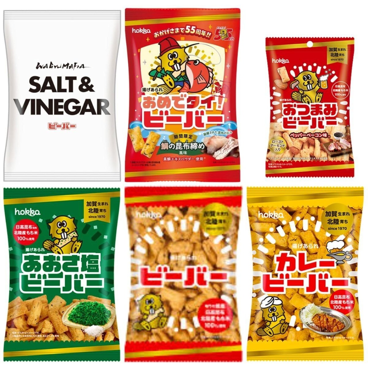 北陸製菓 期間限定 ビーバー 6種類 詰め合わせ セット (ソルトアンドベネガー おめでタイビーバー カレービーバー あおさ塩ビーバー おつまみビーバー)