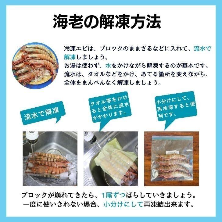 大きな海老は、頭がついている場合は、胴体と比べて頭の方が火の通りが遅くなります。 揚げ物の場合ですと、全体的に加熱していただいた後に、東部のみ1-2分余計に加熱していただきますと、ミソの部分も香ばしく召し上がっていただけると思います。