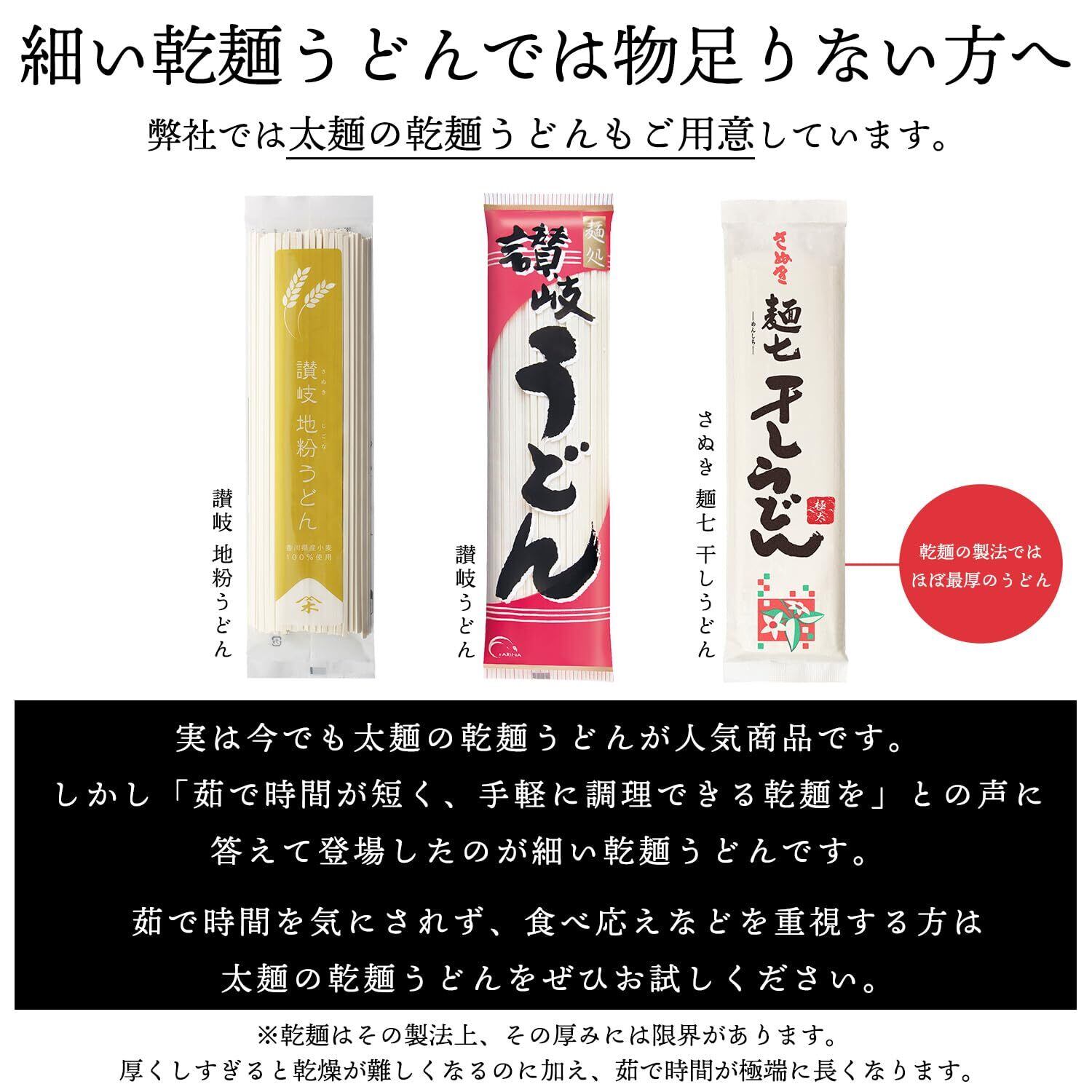 この「早ゆで讃岐うどん」は、わずか3分で茹で上がる乾麺の讃岐うどんです。で販売する乾麺うどんの中で最も早く茹で上がります。 この乾麺うどんの小麦粉には、香川県で開発された讃岐うどん専用小麦「さぬきの夢」を100%使用しています。また、「さぬきの夢」の製粉から製麺までの専用工場で一貫製造しております。 挽きたての新鮮な小麦粉の風味を感じられ、噛んだ後に口内に拡がる淡い甘味をご賞味ください。