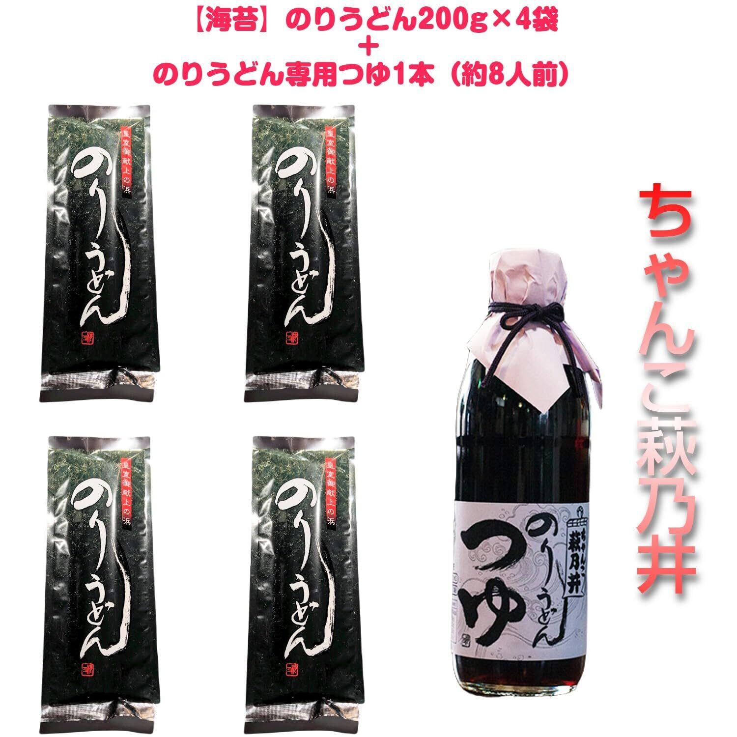 ちゃんこ萩乃井 のりうどん 乾麺 200g ×4袋 + のりうどん専用つゆ 1本セット|宮城県 東松島産海苔使用|海苔うどん|8人前 商品詳細文 【商品概要】 「ちゃんこ萩乃井 のりうどん」は、宮城県 東松島産の新鮮な海苔をたっぷり練り込んだ乾麺です。200gのうどんが4袋と、専用つゆ1本がセットになっており、8人前のボリュームでご家庭や贈り物に最適です。 【特徴】 こだわりの海苔使用:宮城県 東松島産の無添加海苔を使用し、自然の風味を大切にしました。海苔の香りが豊かで、うどんの味わいを引き立てます。 厳選された原材料:宮城県産の中力粉を2種類使用し、熟練の技術で練り上げています。食感と風味が絶妙に調和した一品です。 贈答用にも最適:ギフトや贈り物としても喜ばれる商品です。大切な方への特別なプレゼントにぴったりです。 特製つゆ付き:うどんの風味を引き立てる専用つゆがセットになっており、麺とつゆの絶妙な組み合わせをお楽しみいただけます。 安心・安全:無添加で、化学調味料を一切使用していません。安心してお召し上がりいただけます。 【原材料名】 小麦粉(国産)、海苔粉末、食塩 【注意事項】 直射日光や高温多湿を避けて保存してください。本商品は小麦を含みます。アレルギーのある方はご注意ください。 【ご利用方法】 たっぷりのお湯で茹でて、お好みのつゆでお召し上がりください。調理法やアレンジの詳細については、同梱の説明書をご参照ください。