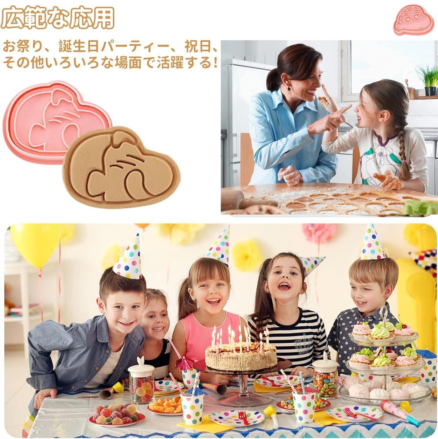 【アンパンマン クッキー型】アンパンマン クッキー型は、ファッジ、チョコレートビスケット、チーズ、パンケーキなどのおいしいお菓子を作るのに理想的です。アンパンマン クッキー型を使用した後、食品はより魅力的で繊細でコンパクトに見えるようになります。操作が簡単で、型抜きも簡単なので、いろいろな種類のおいしいお菓子が簡単に作れます。