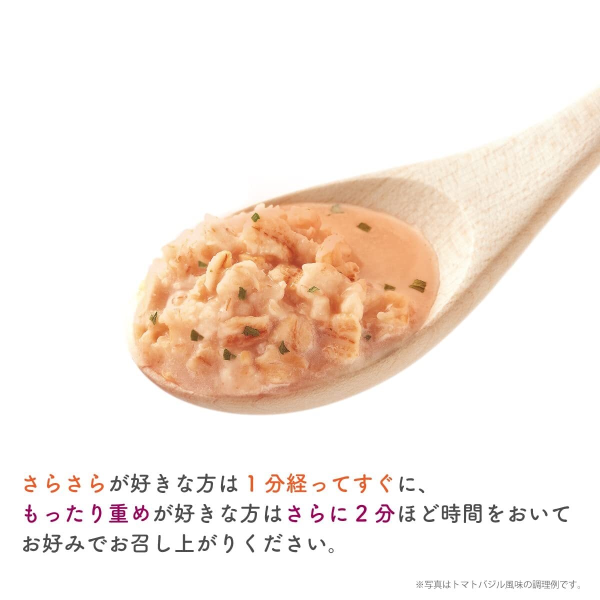 白米の約18倍の食物繊維を含む(※1)ヘルシー食材”オートミール”を、お湯を注いで1分でおいしく食べることができる即席カップタイプ。ごはんやパンなどの主食と比べて低カロリー・低糖質(※2) 美味しさとフードロス削減を実現するために、 アップサイクルな液体調味料にこだわりました。 【通販限定!3種×4個の詰め合わせセット】 ●オートミールトマトバジル風味:加工工程で取り除かれた鶏骨を活用したチキンエキスを使用。トマトの旨味とバジルが香るリゾットのような味わい。 ●オートミール梅しそ風味:かつおの刺身やたたき製造時に残る粉状になった身を活用したかつおエキスと、紀州梅を梅干しに加工する工程で使用した漬け汁を活用。梅の酸味と、しその香りがさわやかなお粥のような味わい。 ●オートミール鶏白湯風味:加工工程で取り除かれた国産鶏骨を活用したエキスを使用。濃厚な旨味と生姜の香りが引き立つ鶏白湯風味。 ※1 日本食品標準成分表2015年度版(七訂) 精白うるち米とオートミールとの比較 ※2 日本食品標準成分表2015年度版(七訂) おにぎり100g、食パン60gとの比較