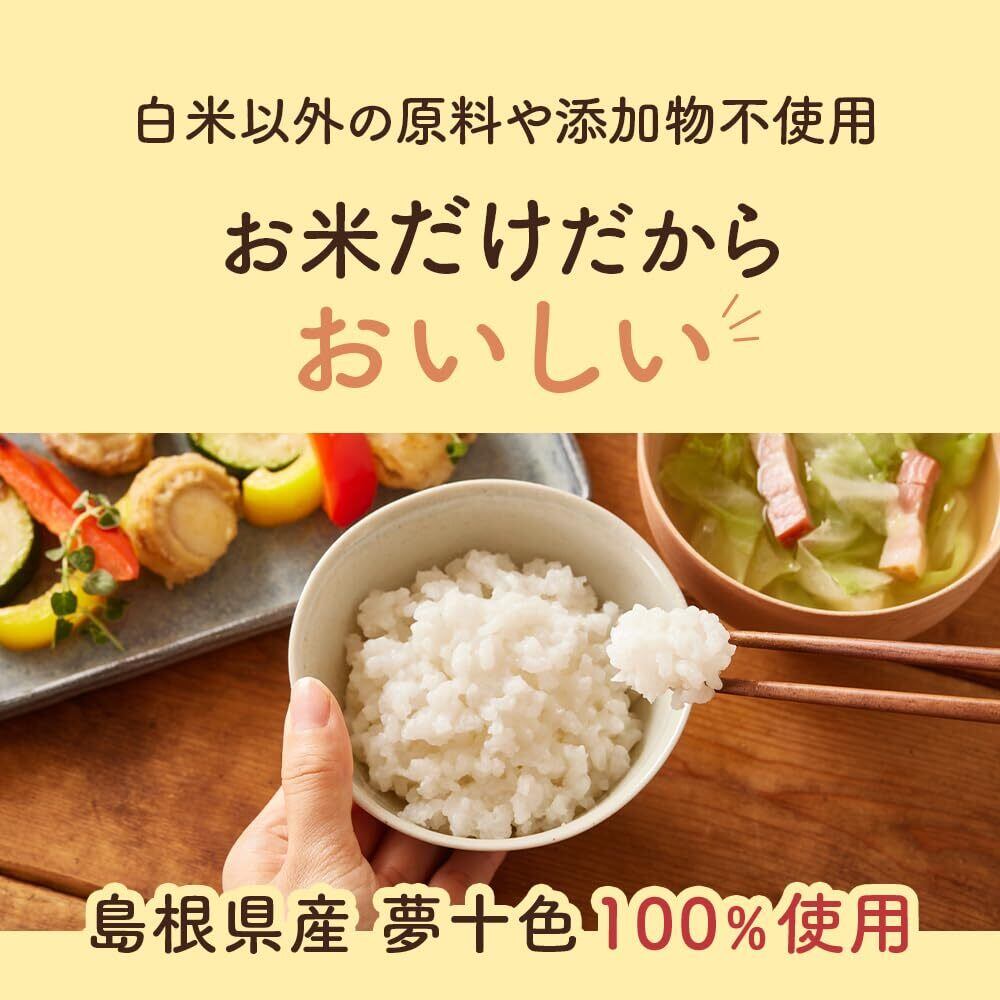 糖質の吸収度合いを示すGI値が低く、糖質20g未満、85kcal/袋ですが、 満足感も有り(内容量150g) お米の中でも高アミロース米に分類される、「夢十色」を100%使用しています。 原材料がお米のみの為、お米本来のおいしさが感じられ、毎日続けられる味わいです。袋ごと電子レンジや湯せんで調理可能、開封して袋のままでも、 お茶碗に盛りつけても、ご家庭やオフィスで手軽に召しあがれます。