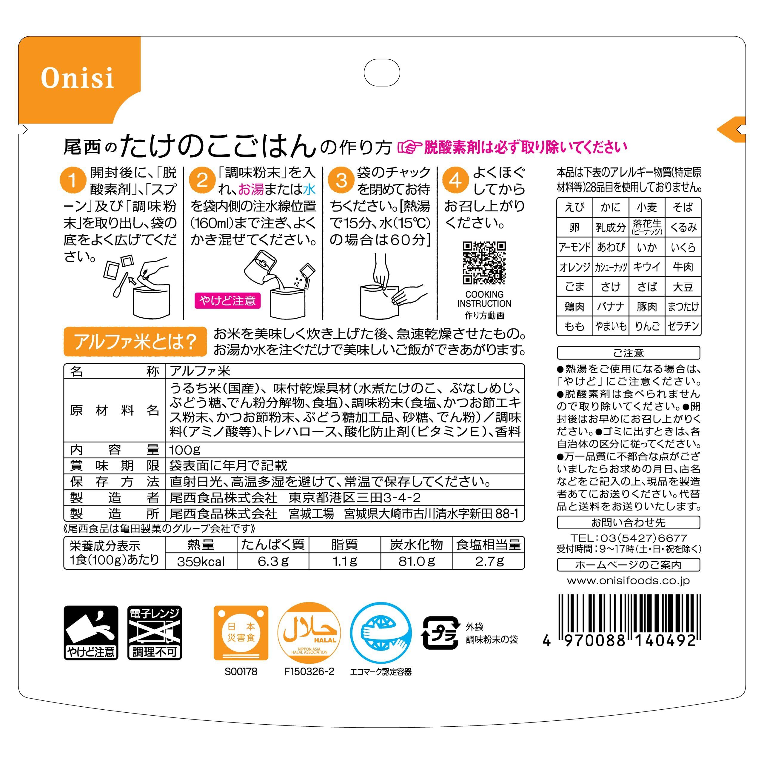 尾西食品 アルファ米 たけのこごはん 100g×5袋 非常食 保存食 長期保存