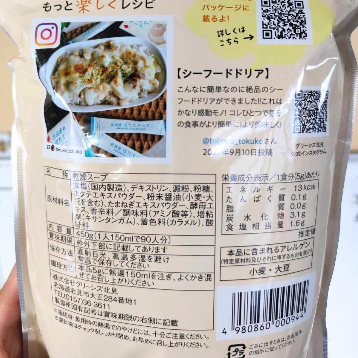 北海道 ほたてスープ 業務用 大容量 グリーンズ北見 ほたて 帆立スープ 450g インスタント