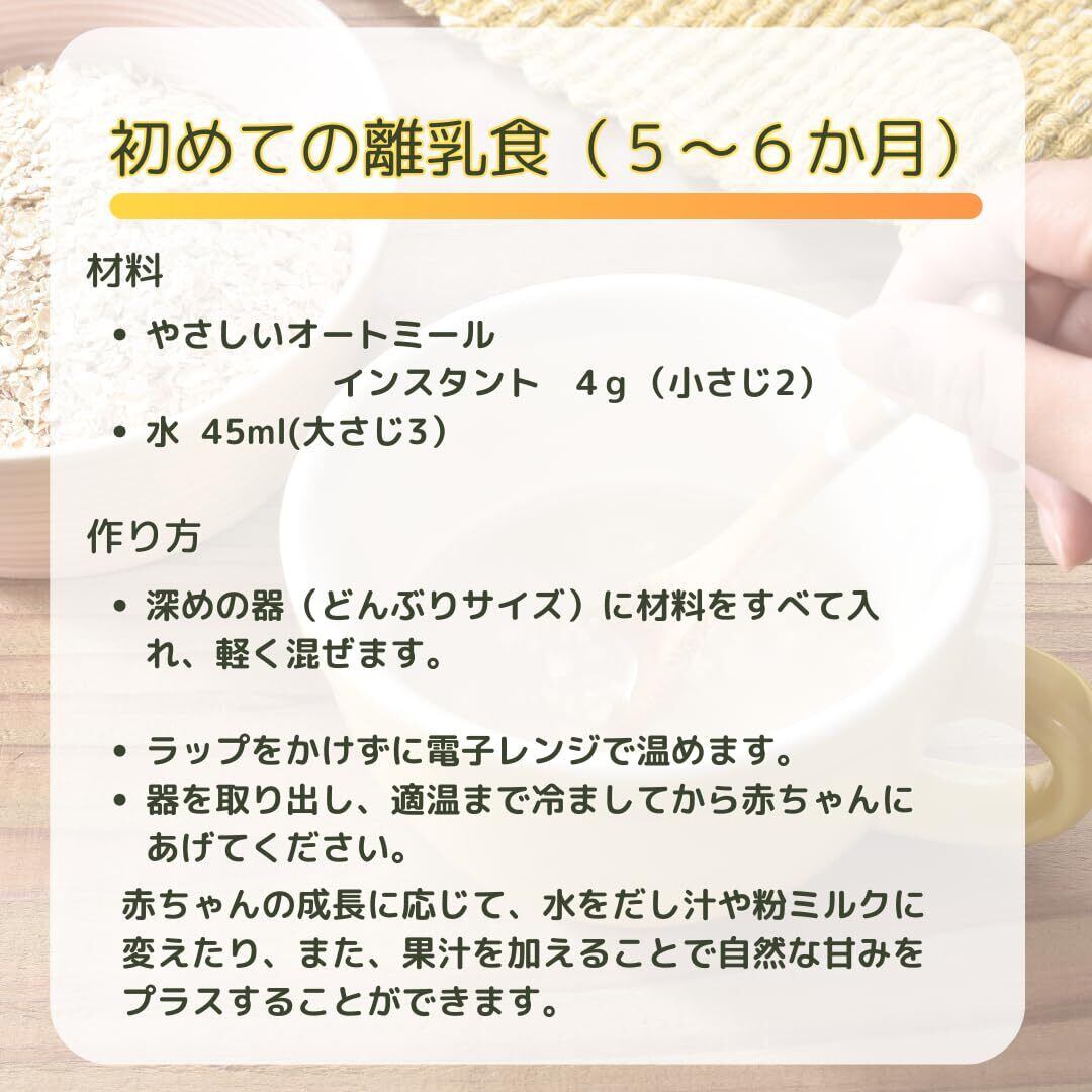 【やさしい食感のインスタントオートミール】 有機栽培されたオーツ麦を100%使用し、薄くロール加工することで、やわらかく食べやすい食感に仕上げたインスタントタイプのオートミールです。調理はとても簡単で、オートミール30gに牛乳と水をそれぞれ100mlずつ加え、電子レンジ(500~600W)で約2分加熱するだけ。なめらかな口あたりとクセのない自然な風味で、朝食はもちろん、軽食や夜食にもぴったりです。お好みでメープルシロップやシナモンを加え、フルーツやナッツをトッピングすれば、より満足感のある一皿に。忙しい毎日でも手間なく続けられます。