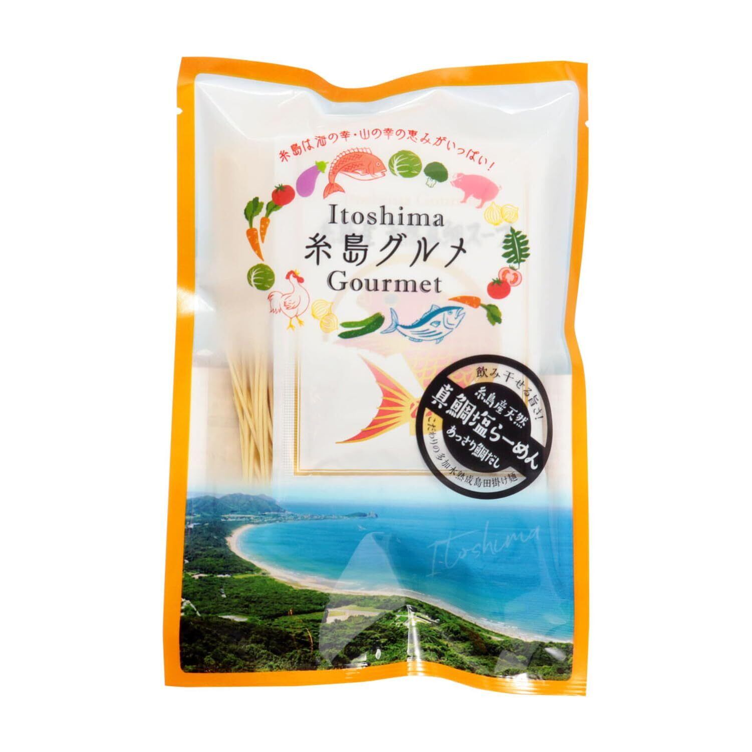 スープは、糸島産天然真鯛の骨を焼いて抽出した真鯛の風味豊かに仕上げ、滑らかなのど越しの麺は、200年以上続く老舗製麺所、長尾製麺の伝統製麺技術で作られた、多加水熟成島田掛け麺を使用。