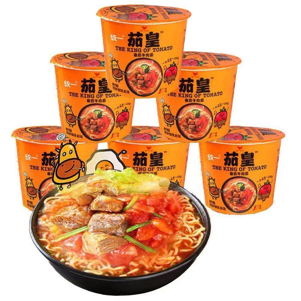方便面 新疆トマト 甘酸っぱくておいしい 濃厚スープ包み 泡面 インスタントラーメン 即席麺 即席ビーフン 中華食材 中国ラーメン 速食拉面 拉面汤面 休闲零食 方便速食 米粉 米线 杯面桶面 (6バレル, トマトエビーフン)