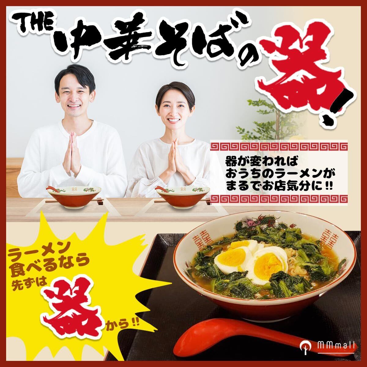 MMmall ラーメン丼 ラーメンどんぶり The 中華そば の器 底に沈まないロングレンゲ付き (切立, 並盛りペアセット)