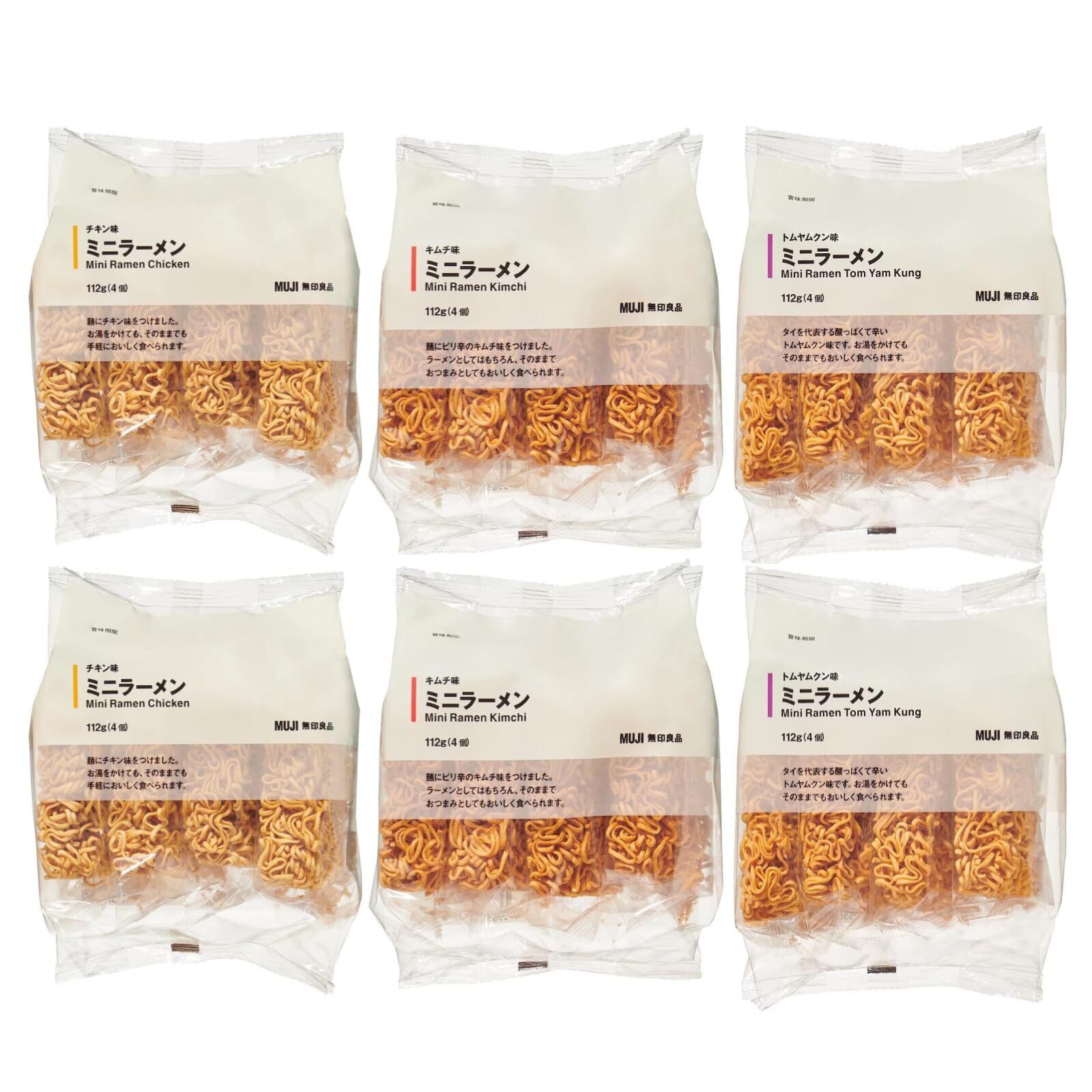 【食べ比べセット】無印良品 ミニラーメン 3種セット(チキン・キムチ・トムヤムクン 各2袋 計6袋)※1袋4個入|即席麺 ノンフライ麺 小腹対策 非常食 無添加 個包装