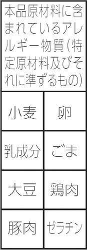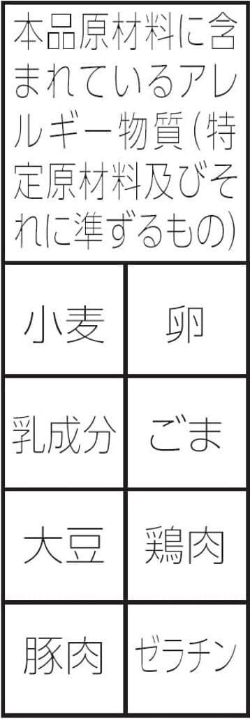 油揚げめん(小麦粉(国内製造)、植物油脂、食塩、香辛料、粉末野菜、卵白)、かやく(ワンタン、味付鶏挽肉)、添付調味料(チキンエキス、香辛料、砂糖、食塩、粉末野菜、しょうゆ、ねぎ、植物油)/加工でん粉、調味料(アミノ酸等)、炭酸カルシウム、カラメル色素、かんすい、レシチン、クチナシ色素、酸化防止剤(ビタミンE)、ビタミンB2、ビタミンB1、(一部に小麦・卵・乳成分・ごま・大豆・鶏肉・豚肉・ゼラチンを含む)