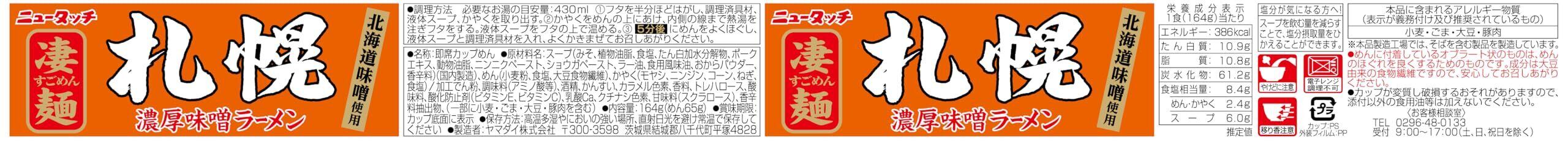 ヤマダイ㈱ ニュータッチ 凄麺札幌濃厚味噌ラーメン 164g ×12個
