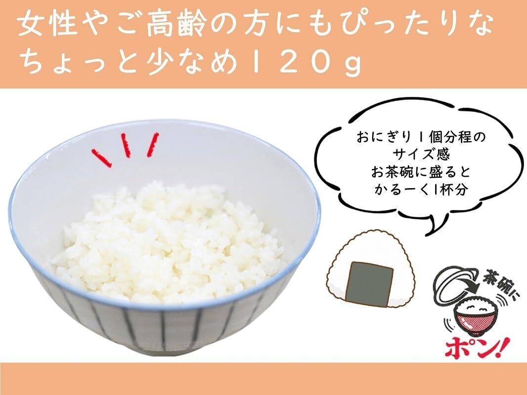 【酸味料】【保存料】【化学調味料】は使用しておりません。新潟県産コシヒカリを100%使用しているフィルムごはんです。レンジでチンするだけで、炊きたての味で、毎日の食卓でもおいしくお召し上がりいただけます。1食120gと少なめで食べきりやすいサイズとなっています。