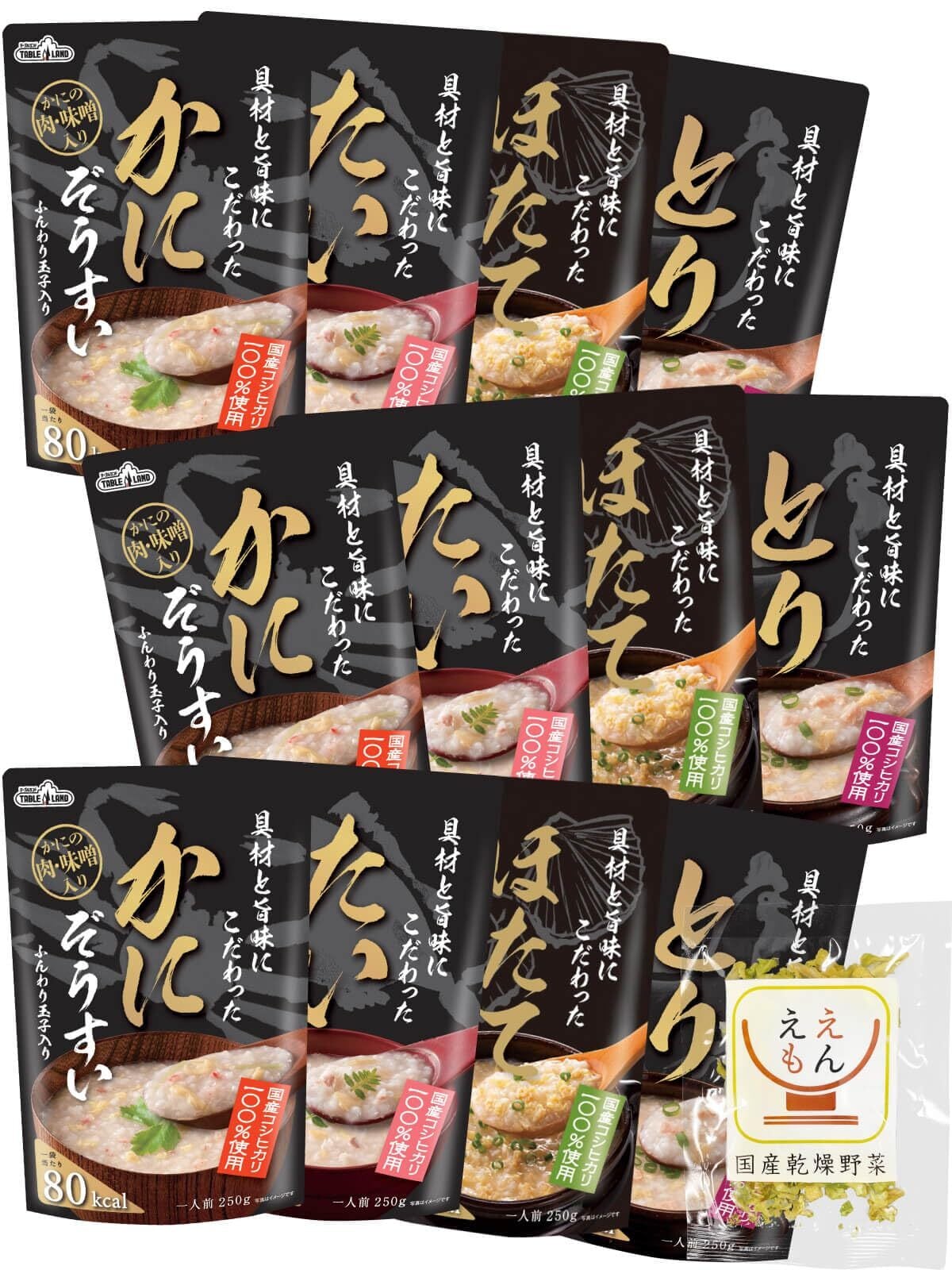 レトルト 雑炊 かに たい ほたて とり 4種12食 詰め合わせ セット テーブルランド レトルト食品 常温保存 ご飯 国産乾燥野菜