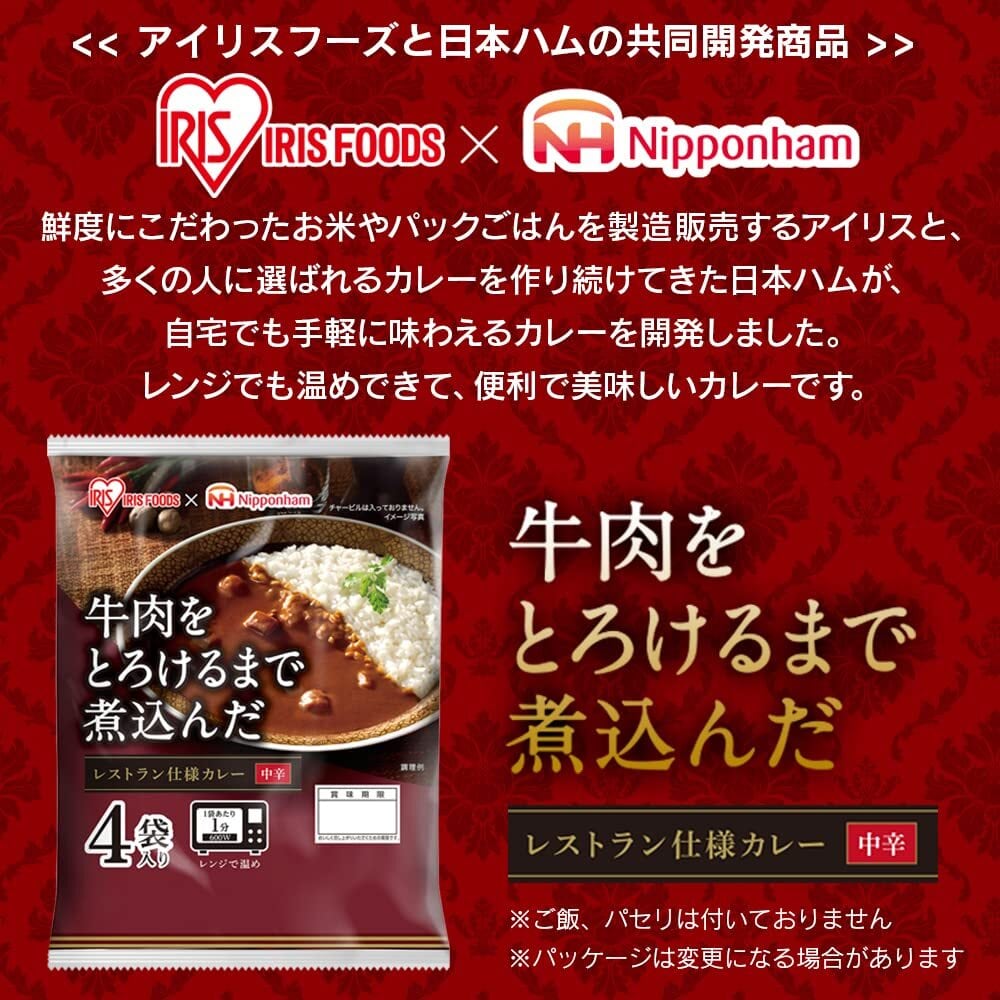 【レトルトカレー+パックご飯】アイリスオーヤマ レトルトカレー 中辛 牛肉 170g x4食 ・パックご飯 180g x 10個 国産米100% 低温製法米のおいしいごはん