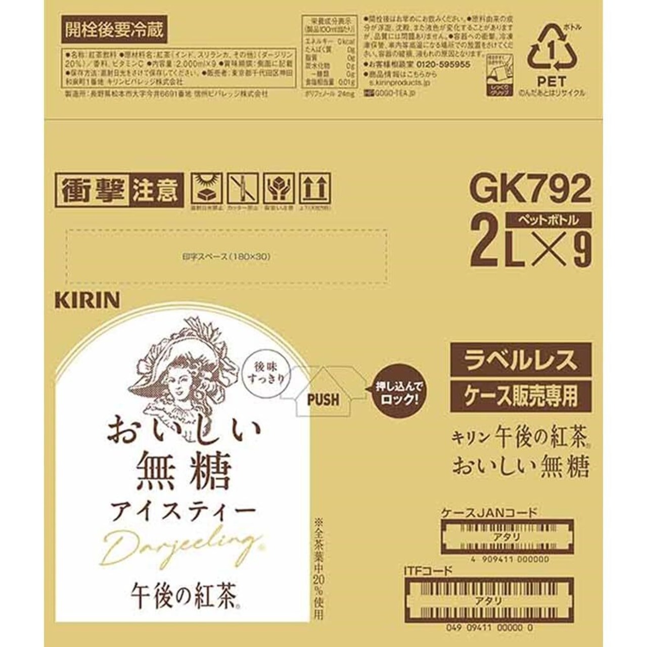 キリン 午後の紅茶 おいしい無糖 2リットル 9本 ラベルレス ペットボトル お茶 無糖紅茶 飲料 アイスティー