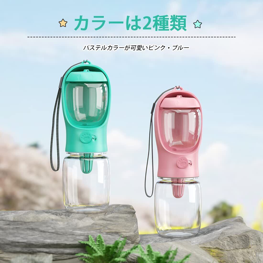 【高品質の素材】PET + ABS。この携帯用の犬用ウォーターボトルは高品質の食品グレードの素材で作られています、安全で無臭、環境にやさしい。ペットも安心して水を飲むことができます。耐久性と安全性に優れています。