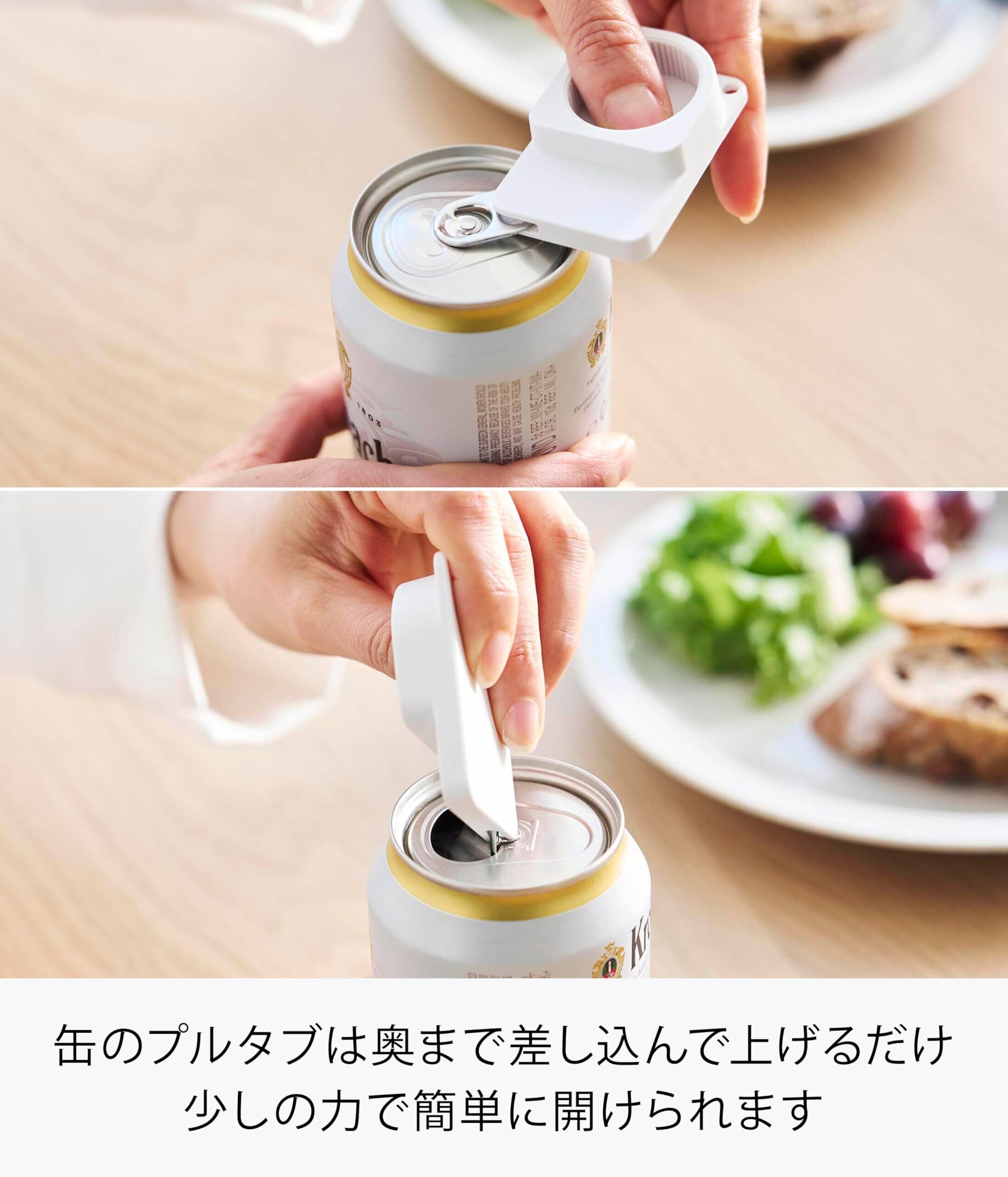 差し込んで回すだけで、簡単に開けることができるキャップ・プルタブオープナーです。
